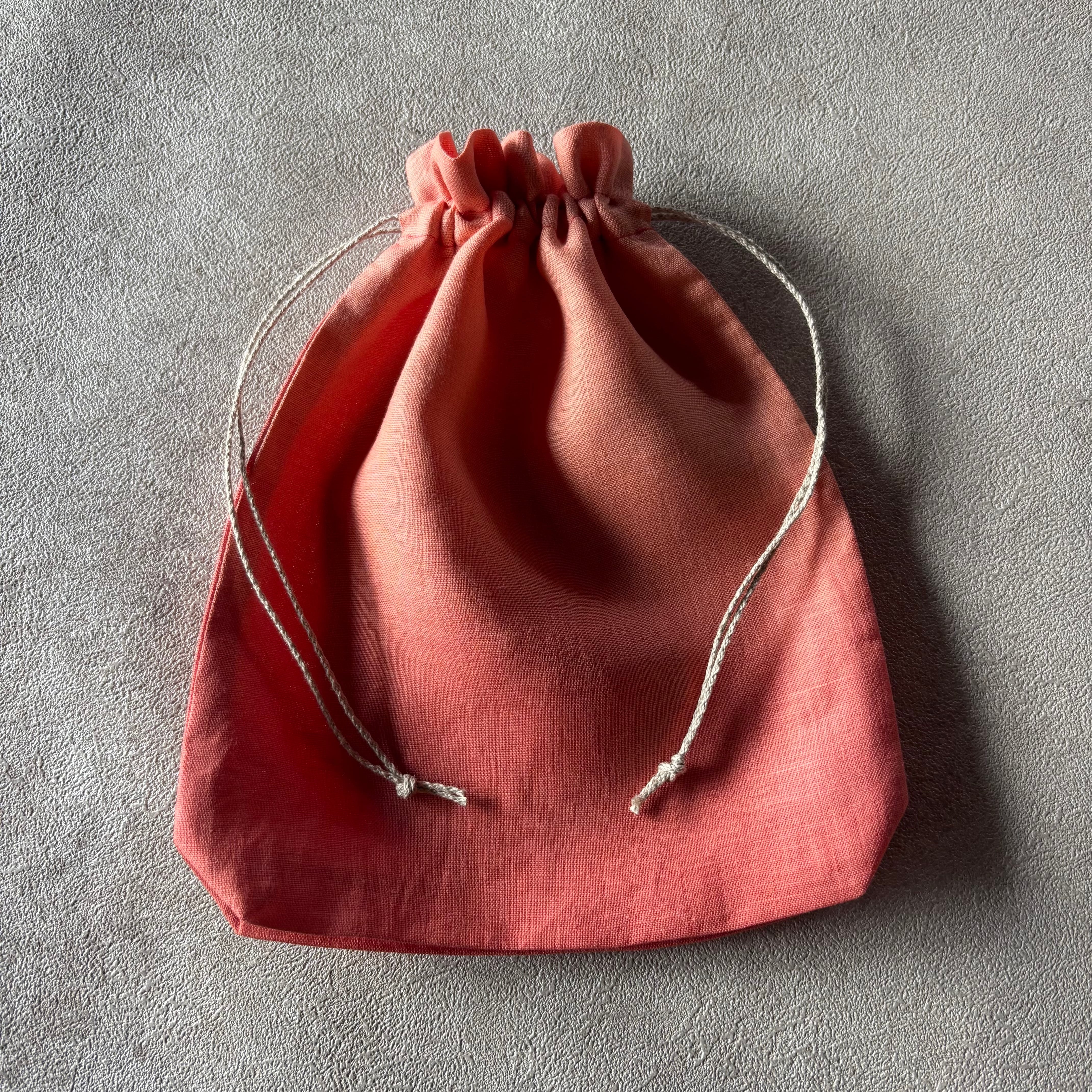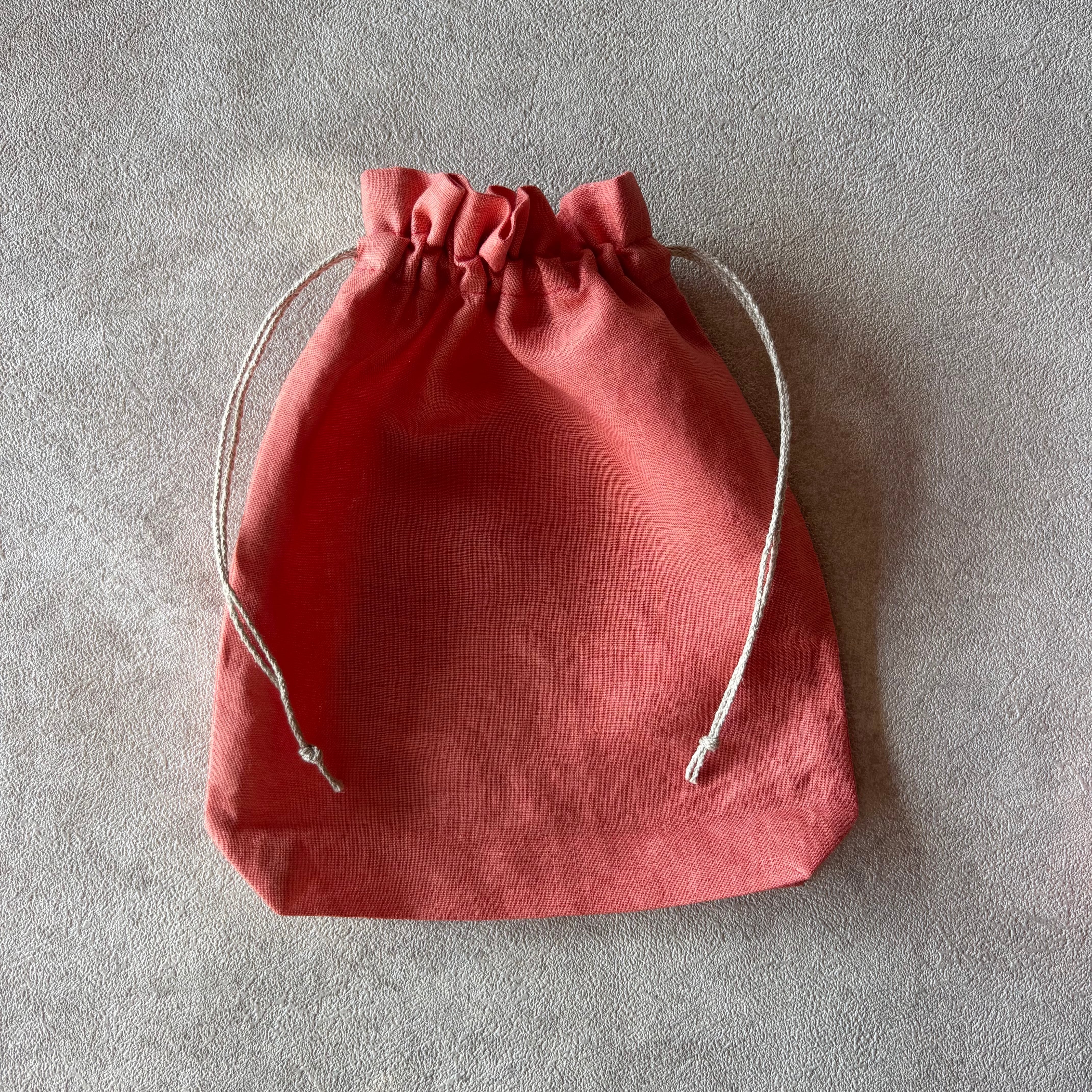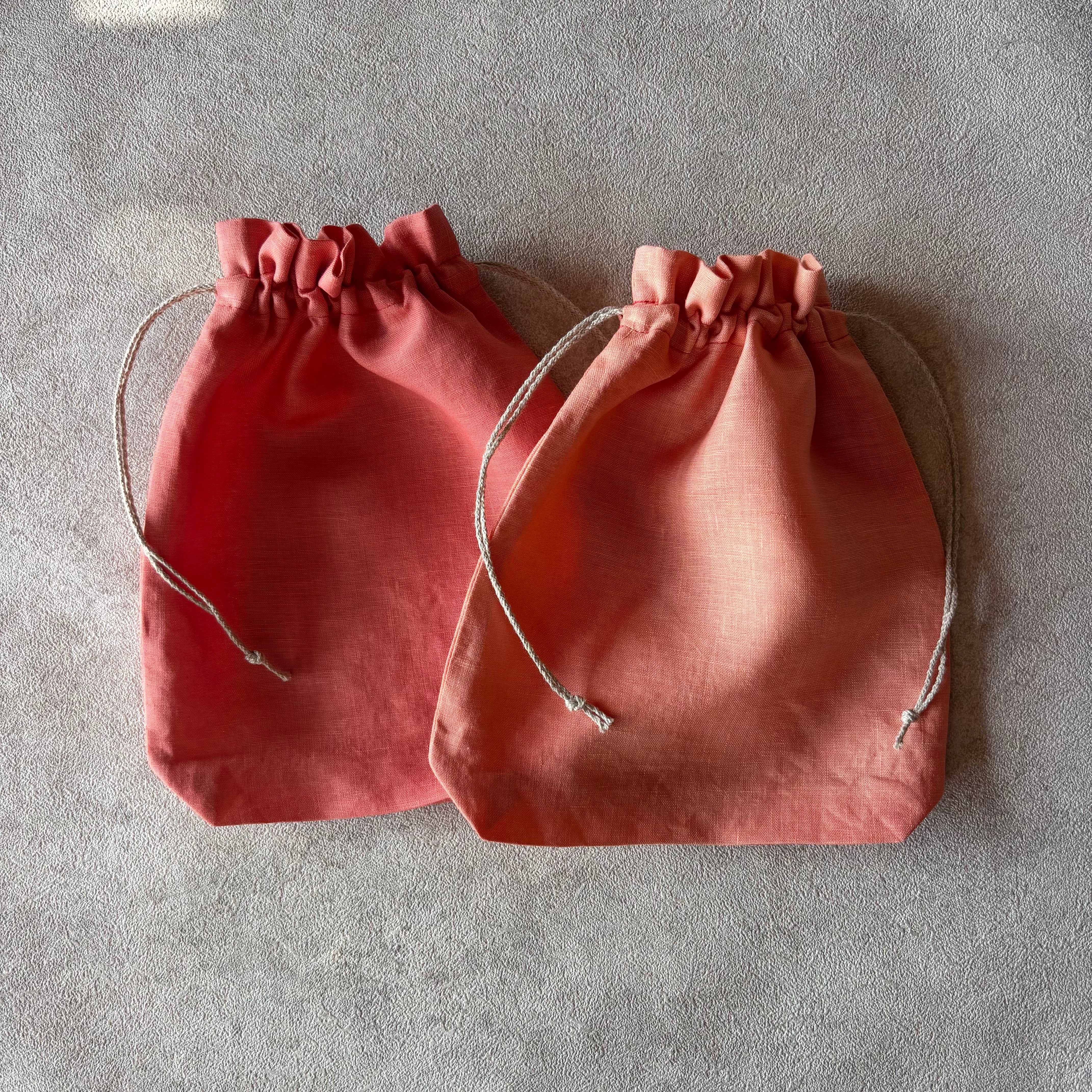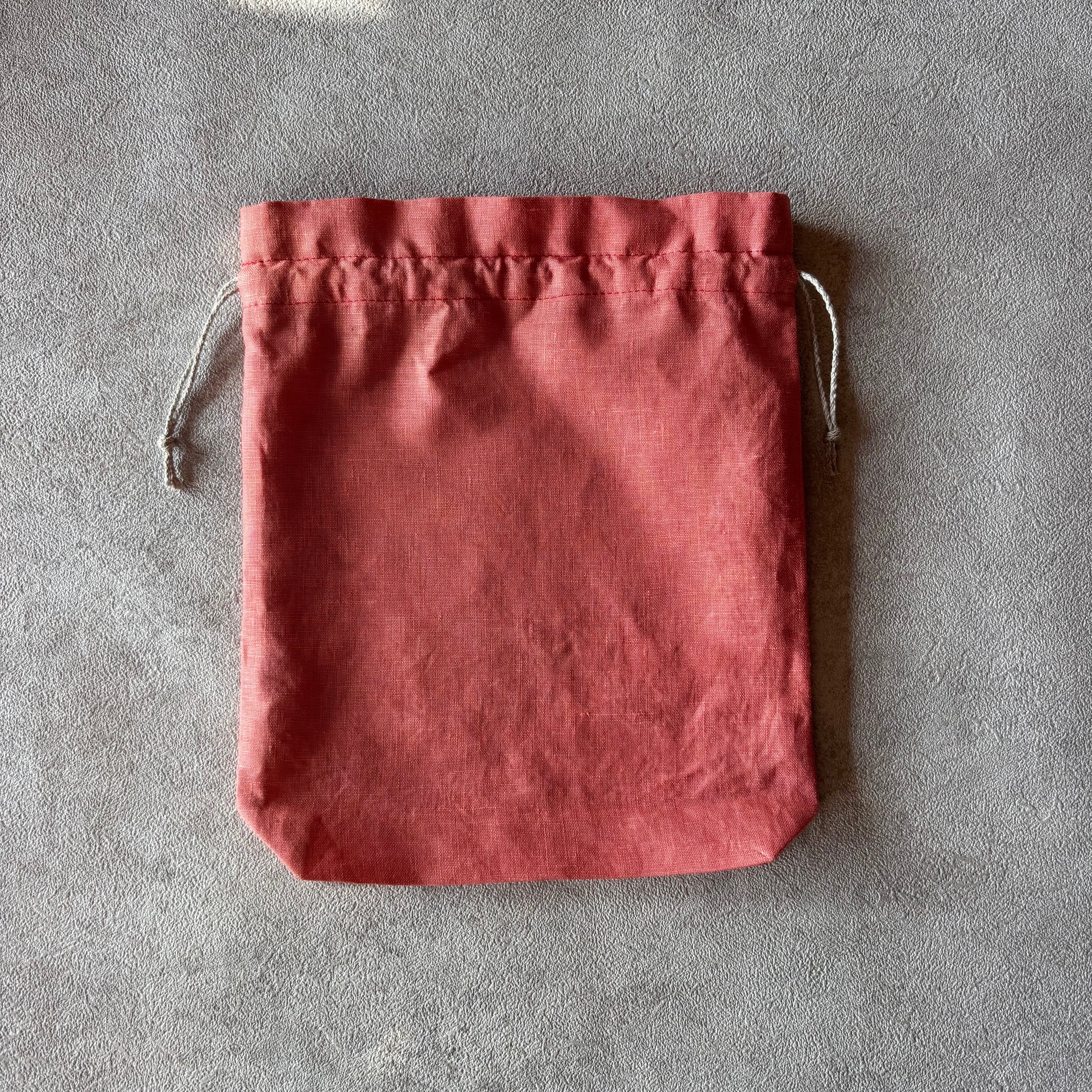 草木染め 巾着ポーチ Medium size リネン100% & リネン100%紐 color : 茜染め