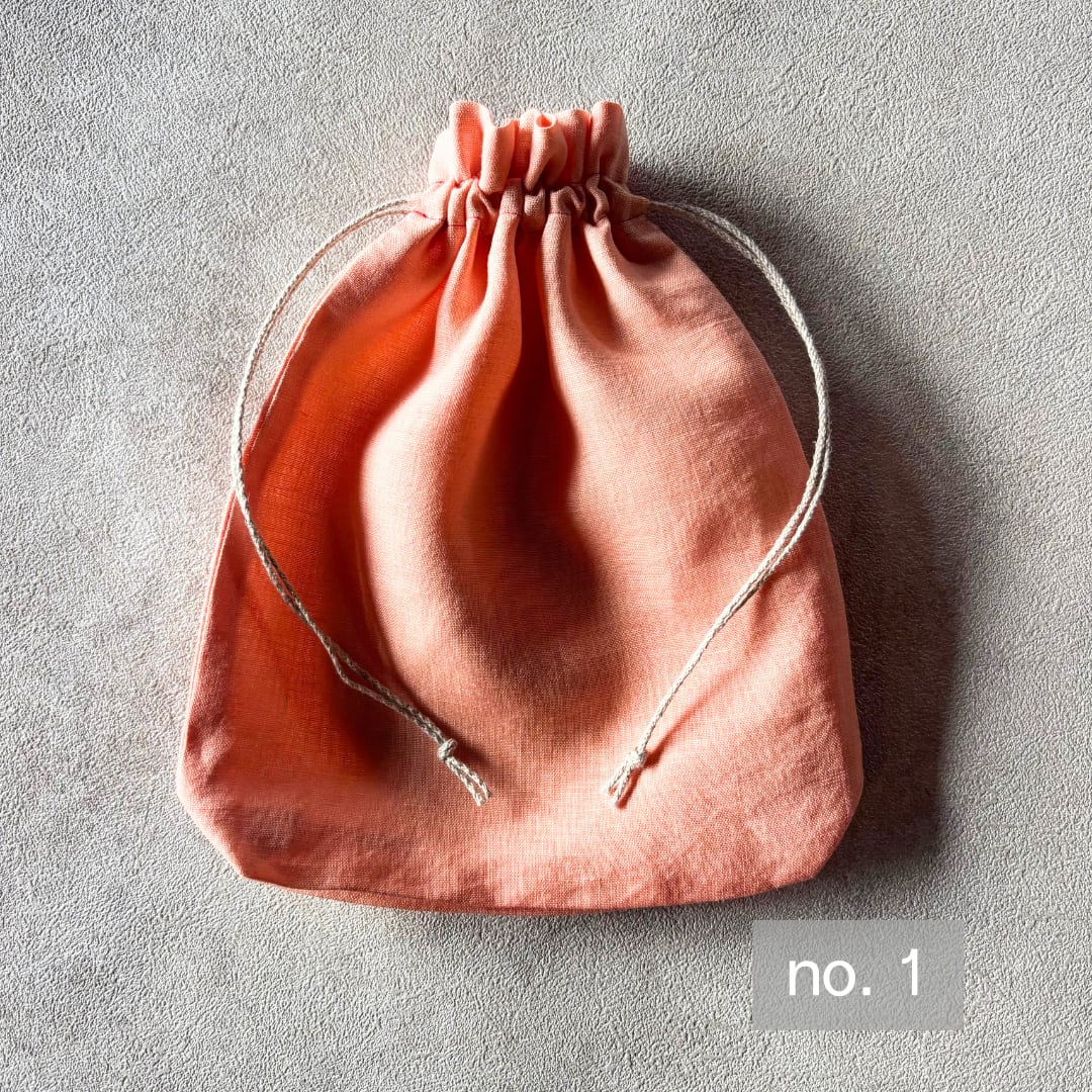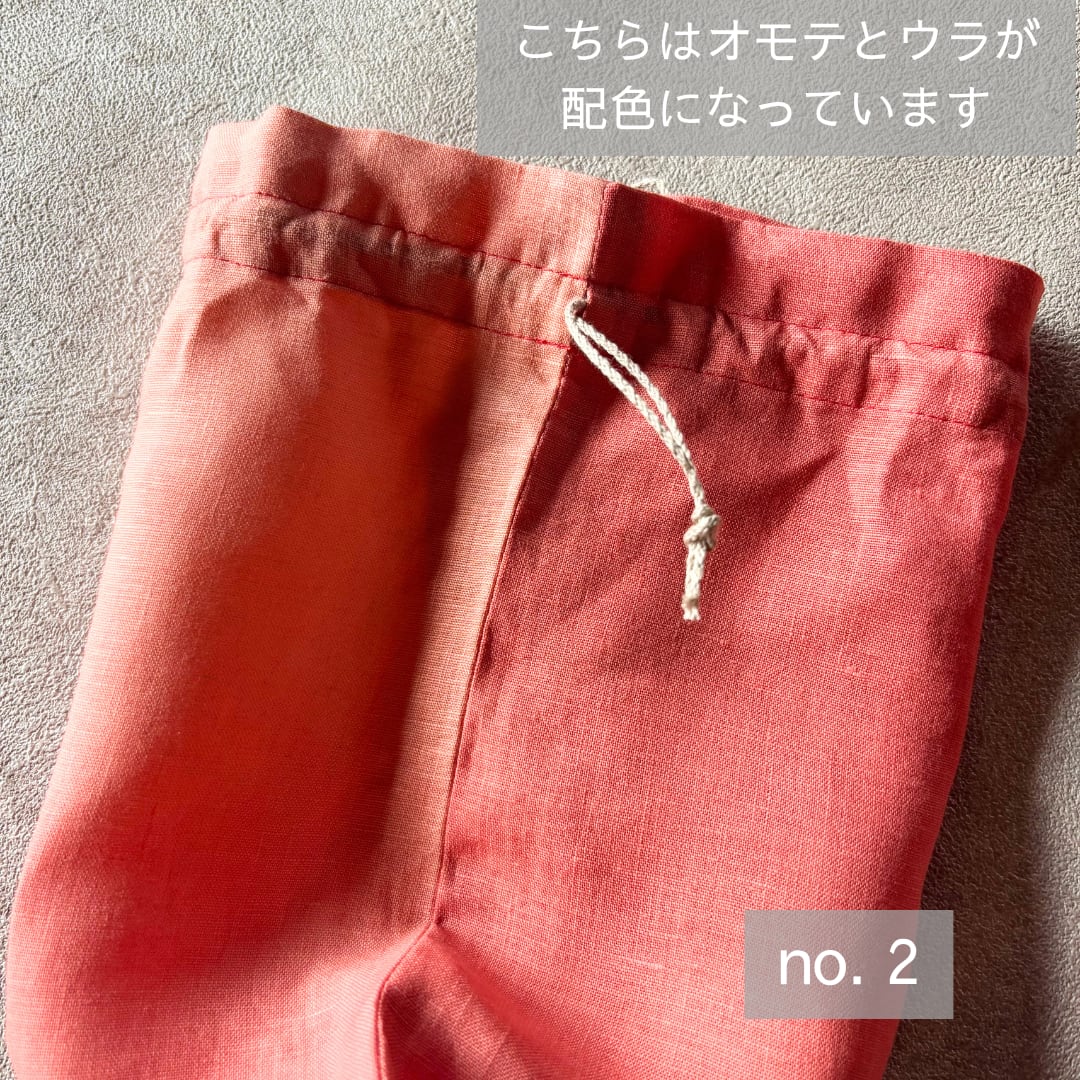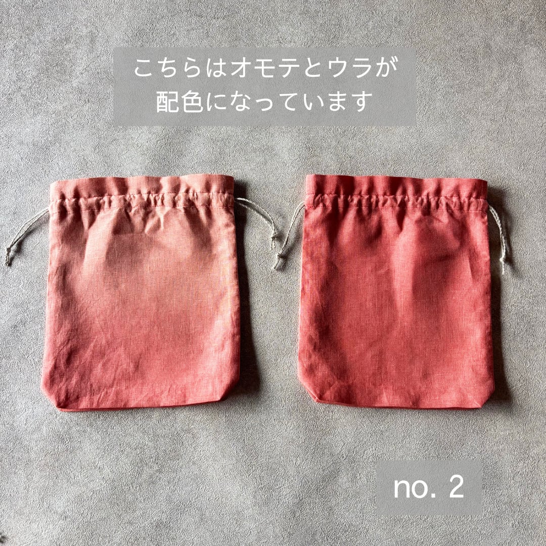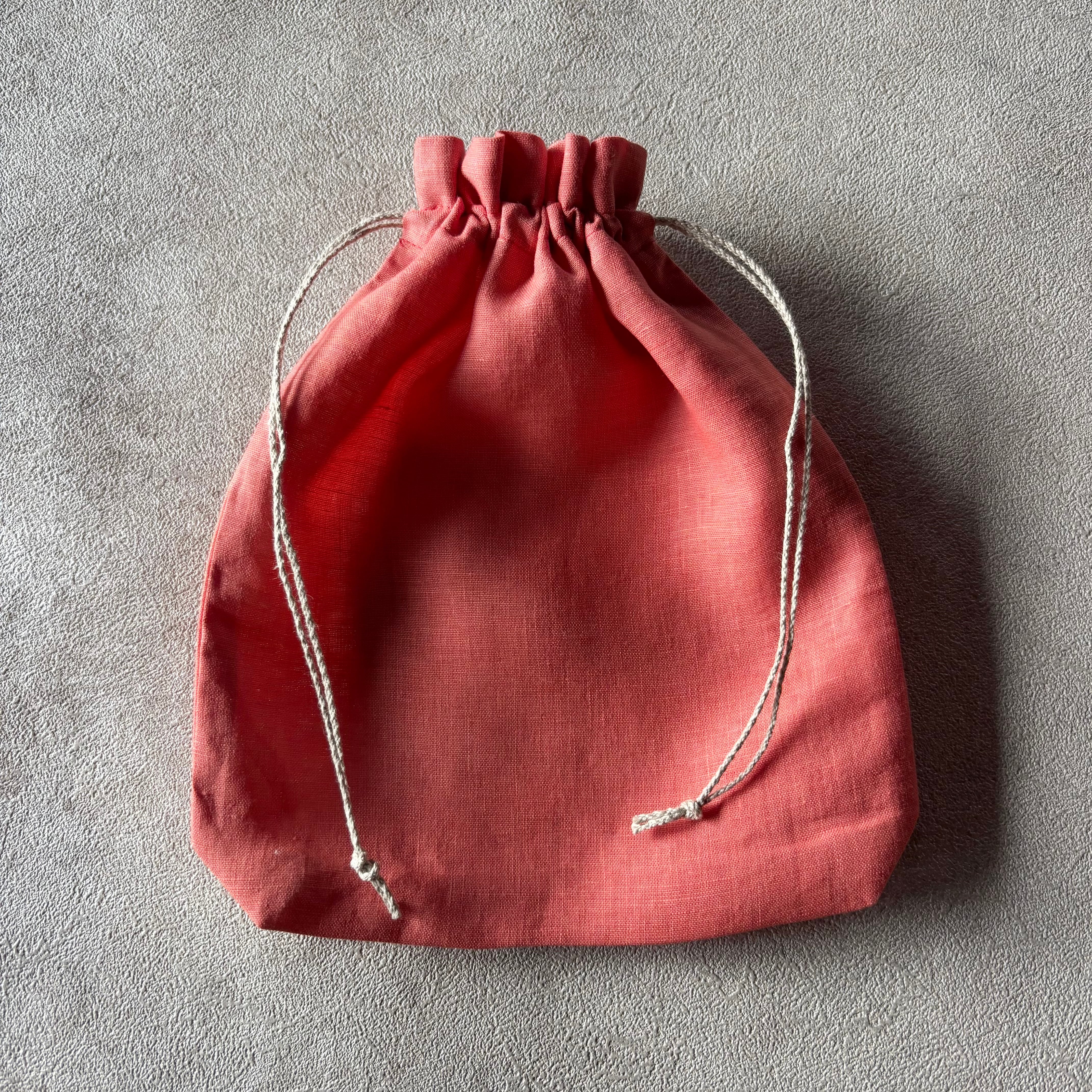 草木染め 巾着ポーチ Medium size リネン100% & リネン100%紐 color : 茜染め