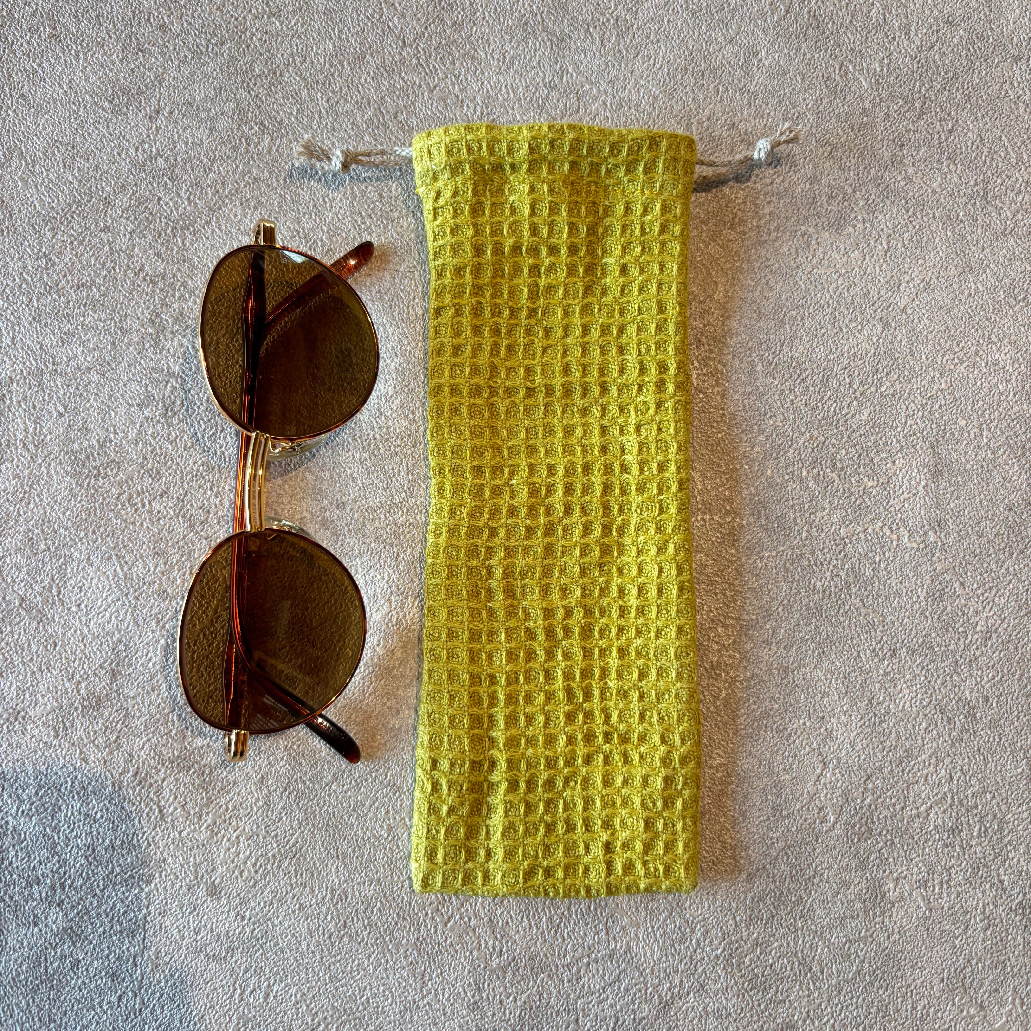 草木染め メガネケース 巾着ポーチ リネンワッフル 100% & リネン紐 color : ハナモモ