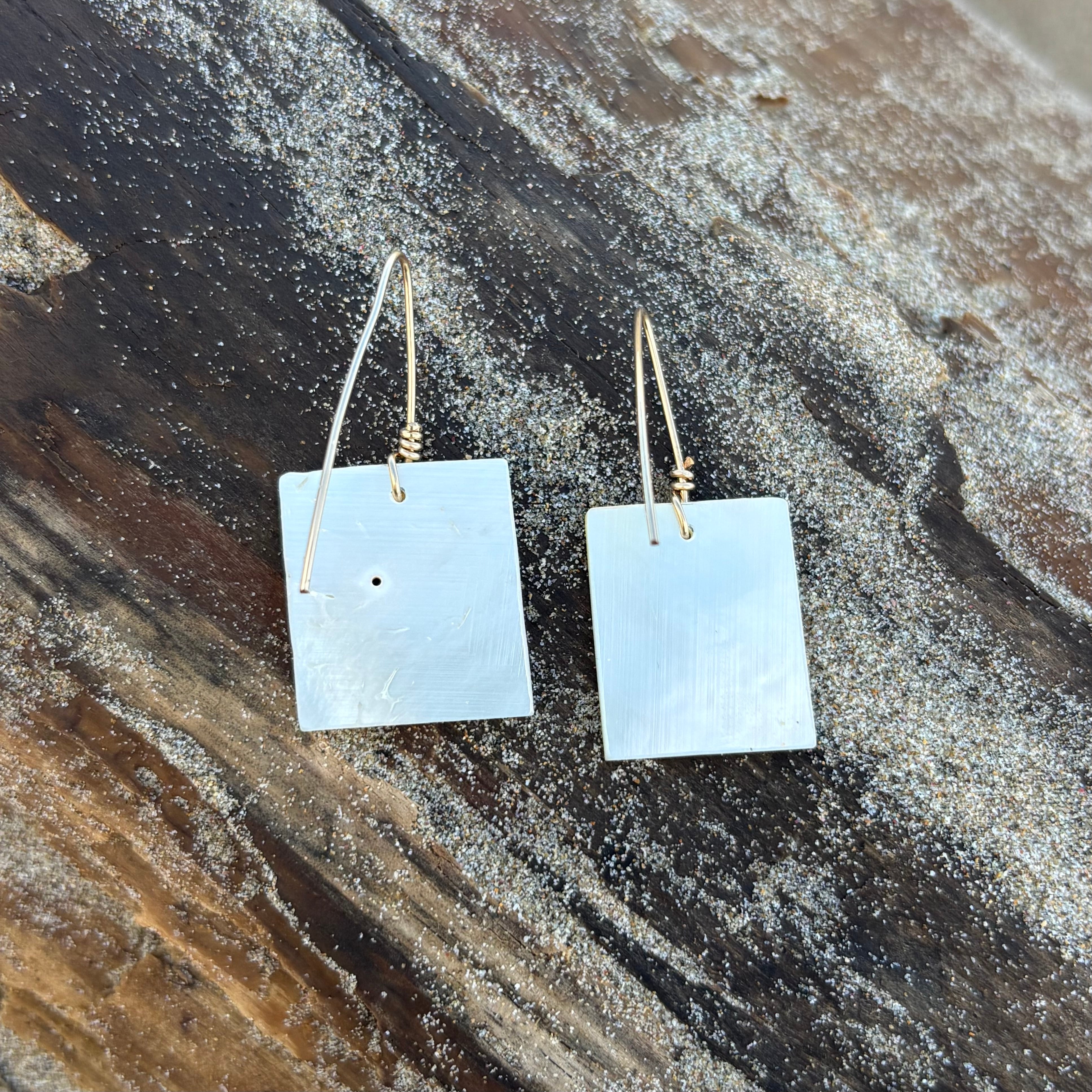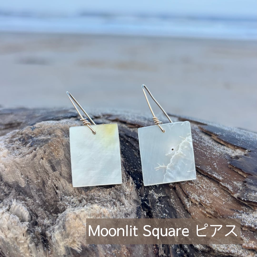 四角いマザーオブパール(白蝶貝) の貝パーツと14KGFワイヤーを合わせたデザインです
