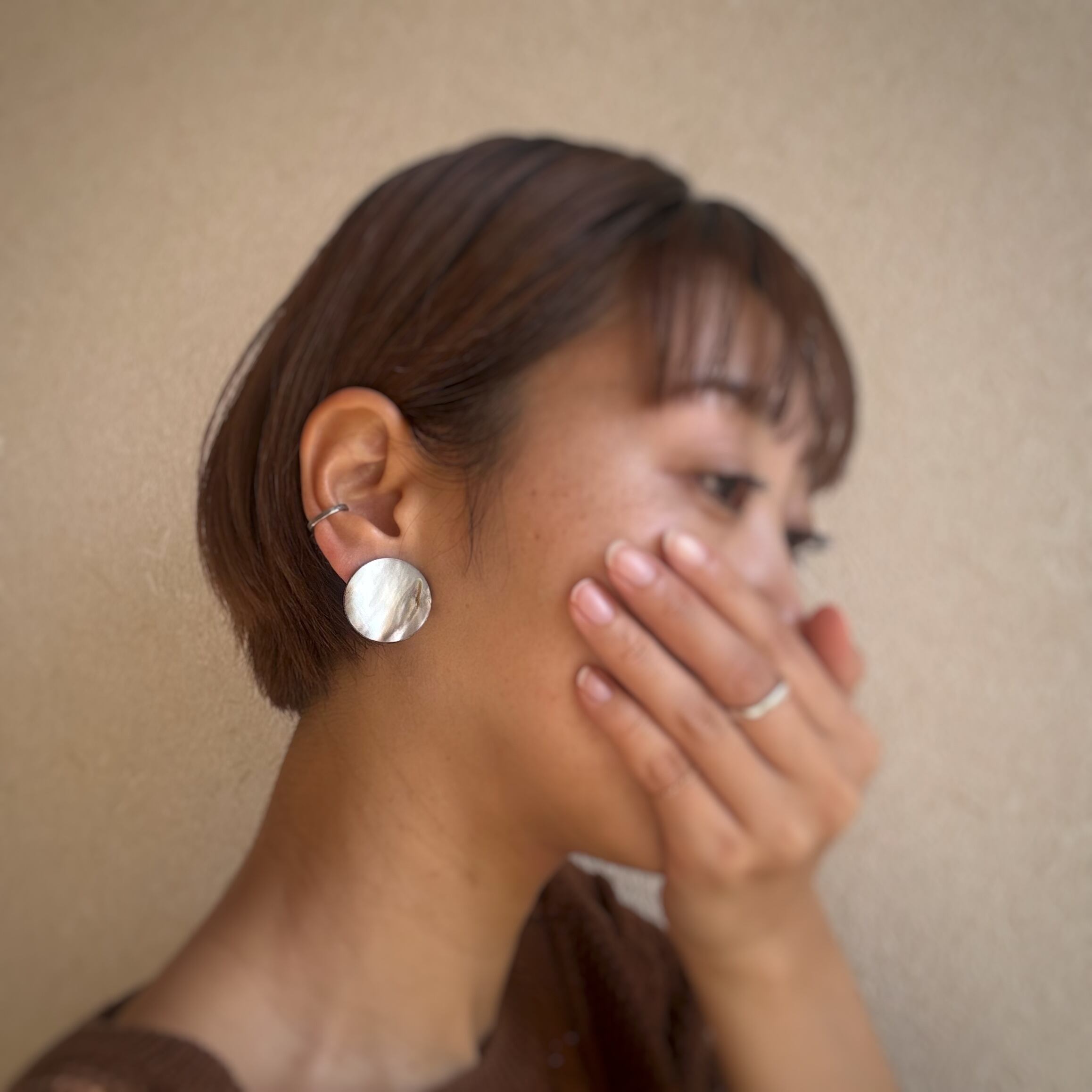 ※イヤリング金具を上目に装着しています。