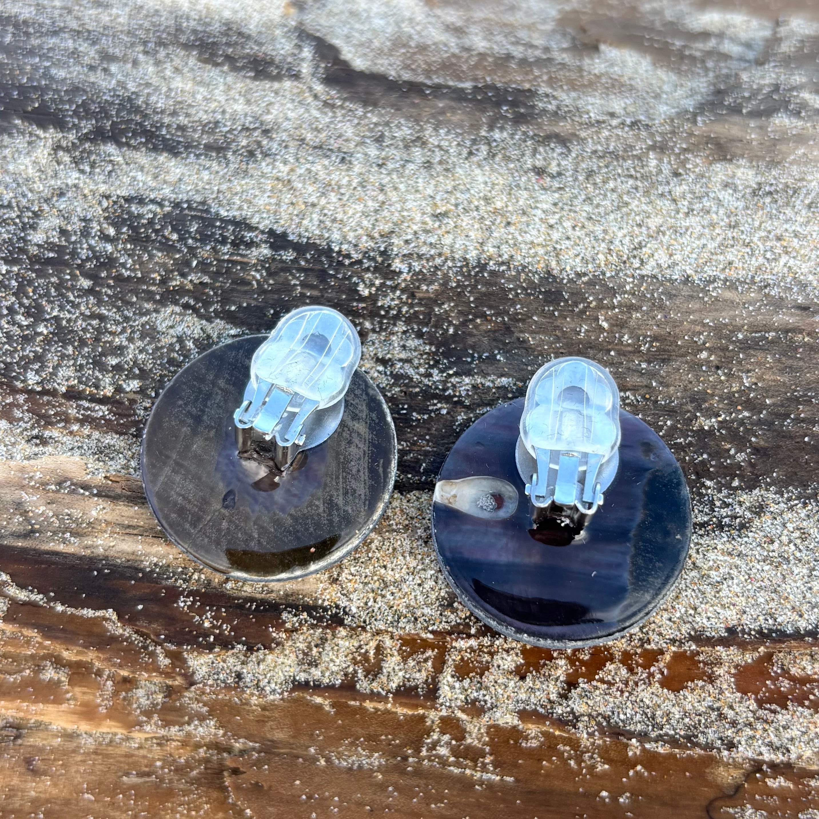 黒蝶貝の独特の色合いと輝きが映える大きな丸いイヤリングです