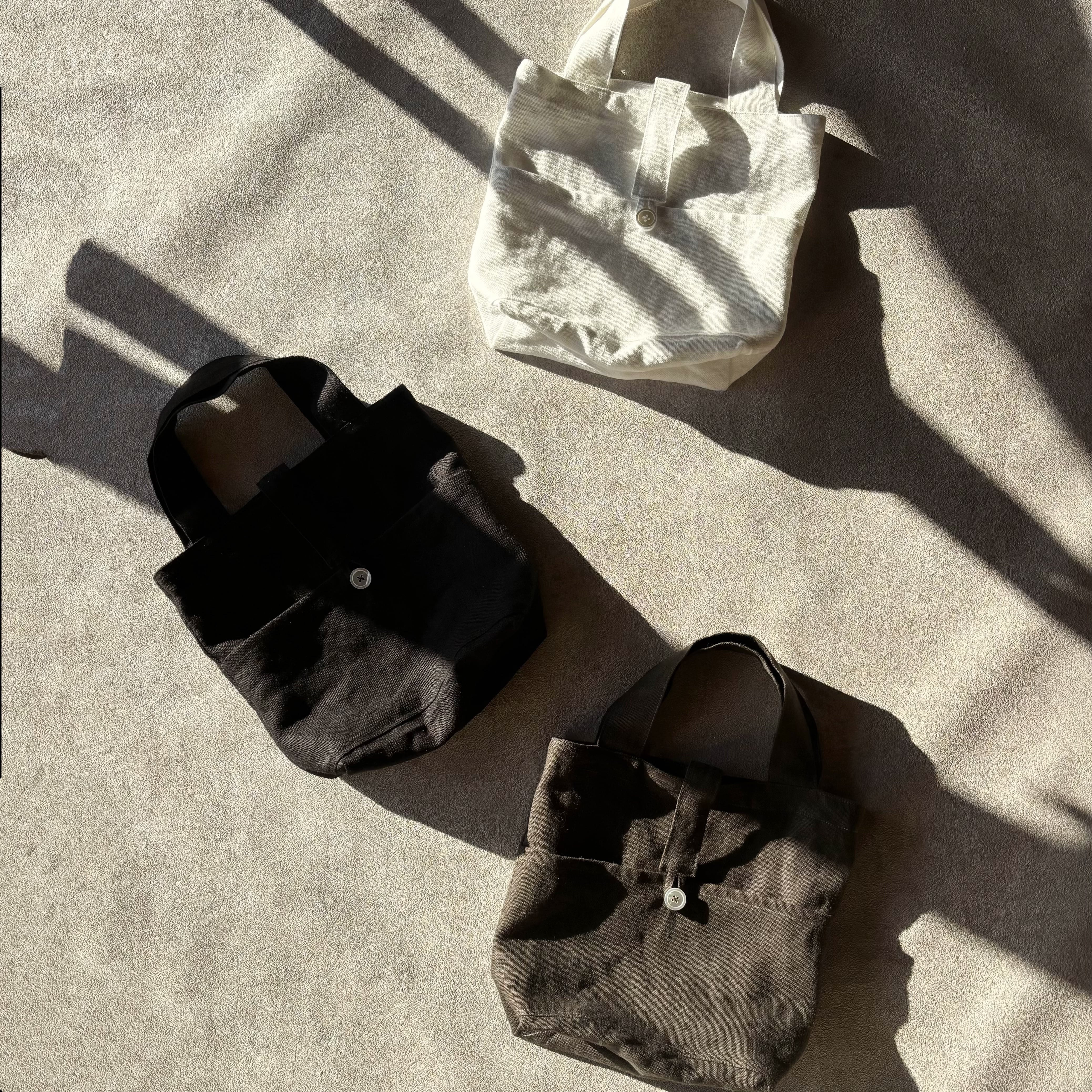 リネンのトートバッグ マチあり 白蝶貝ボタン リネン100% 3color