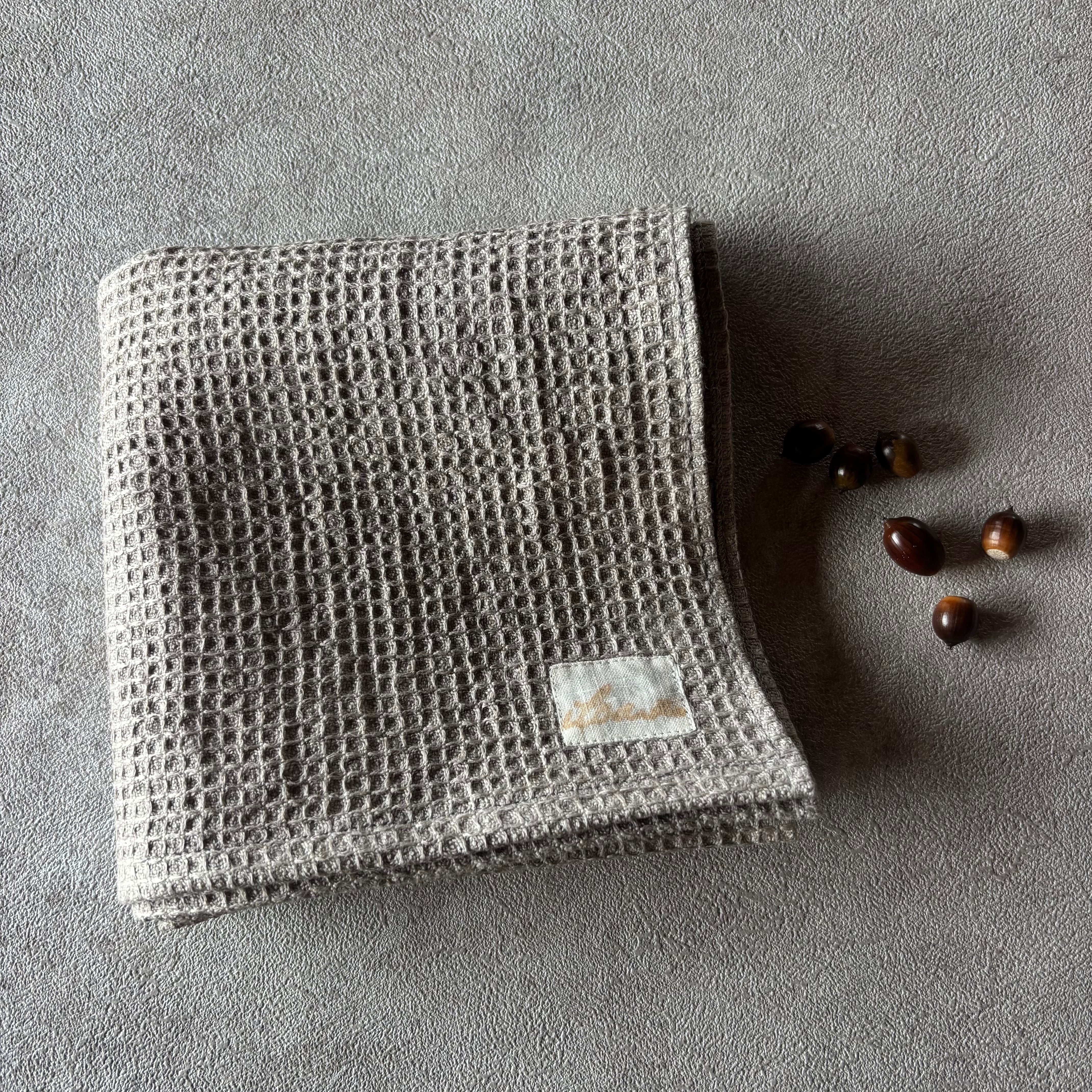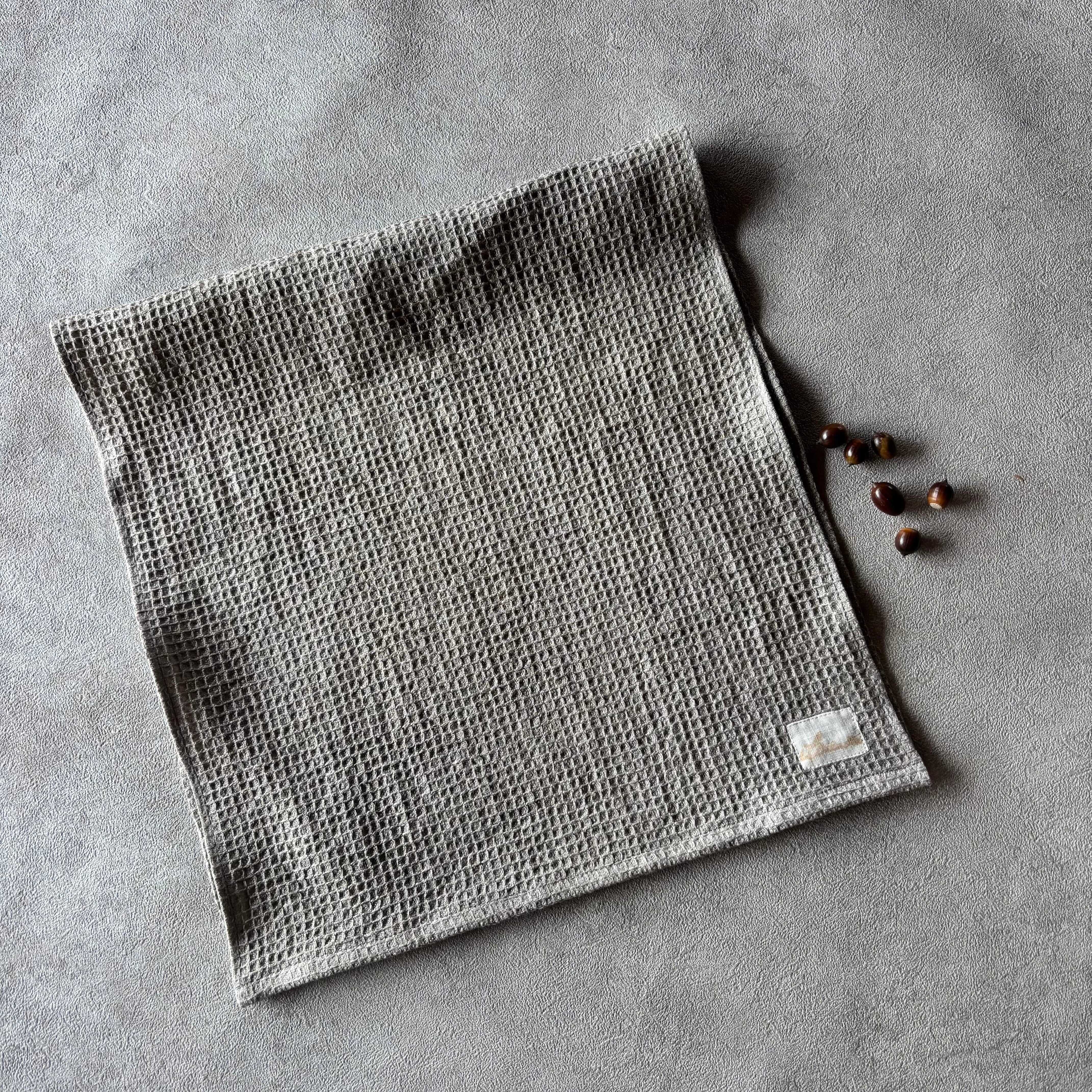 どんぐり染リネンワッフルタオル リネン100% color : 白鼠 [アイスグレー]