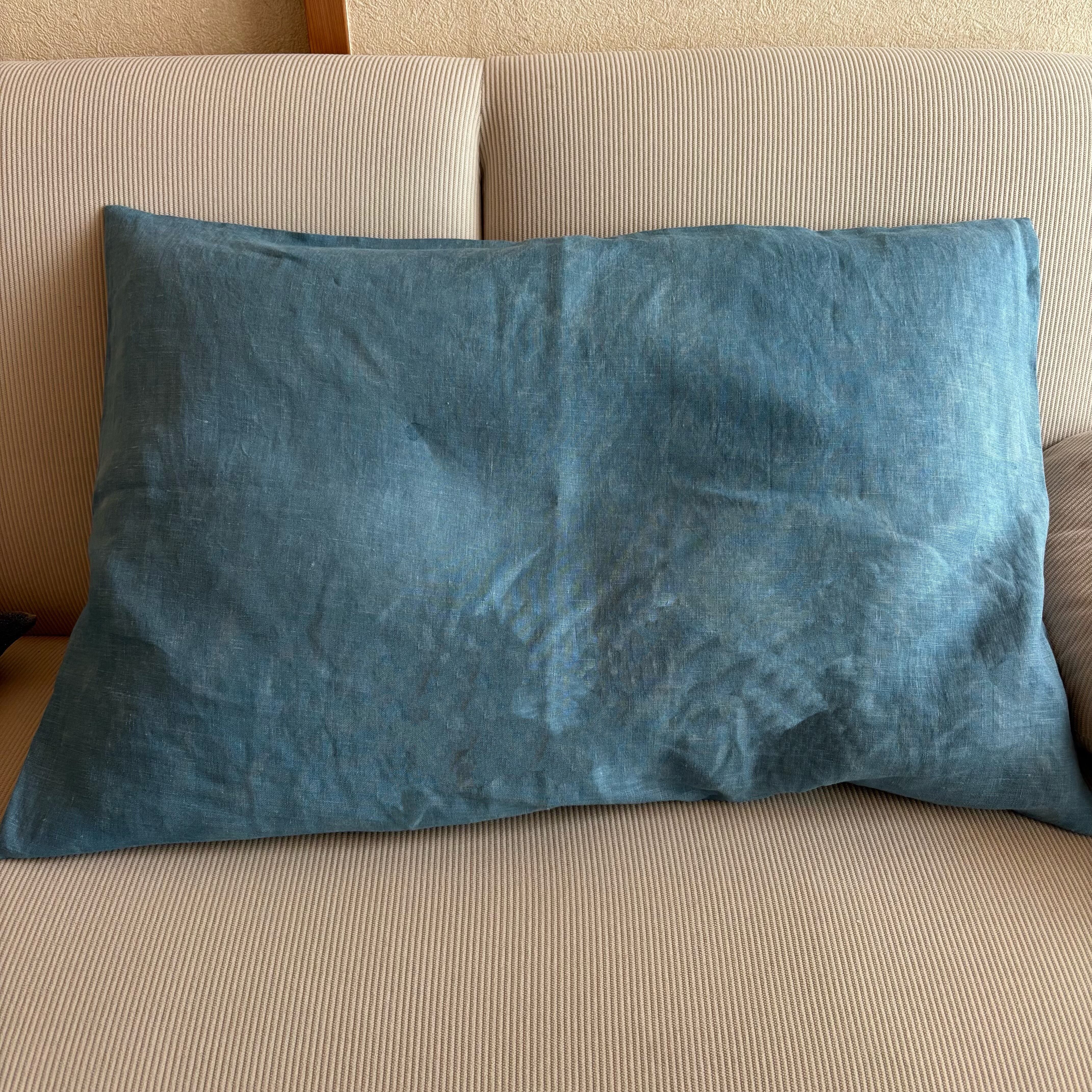 藍の乾燥葉で染めたまくらカバーです