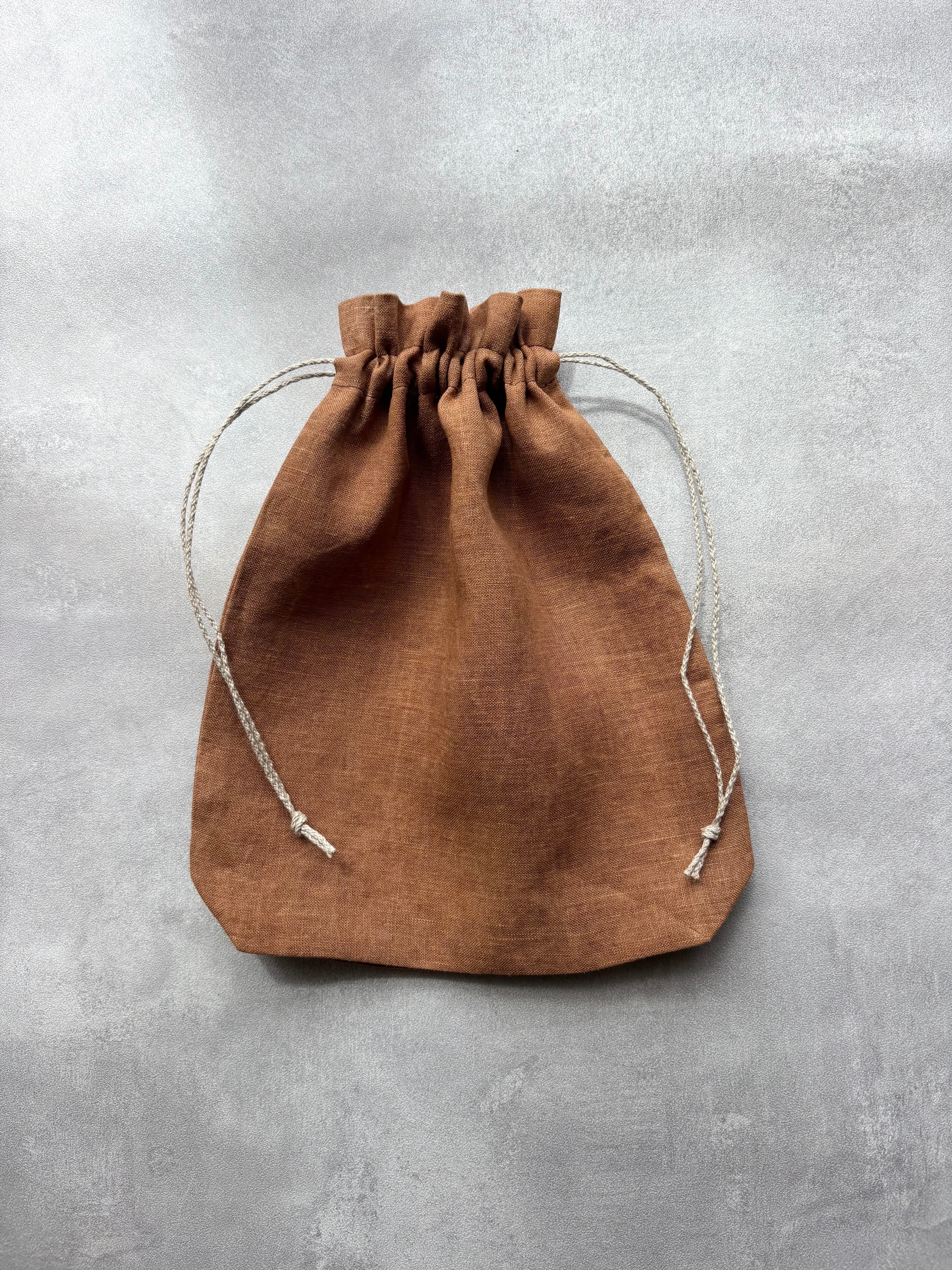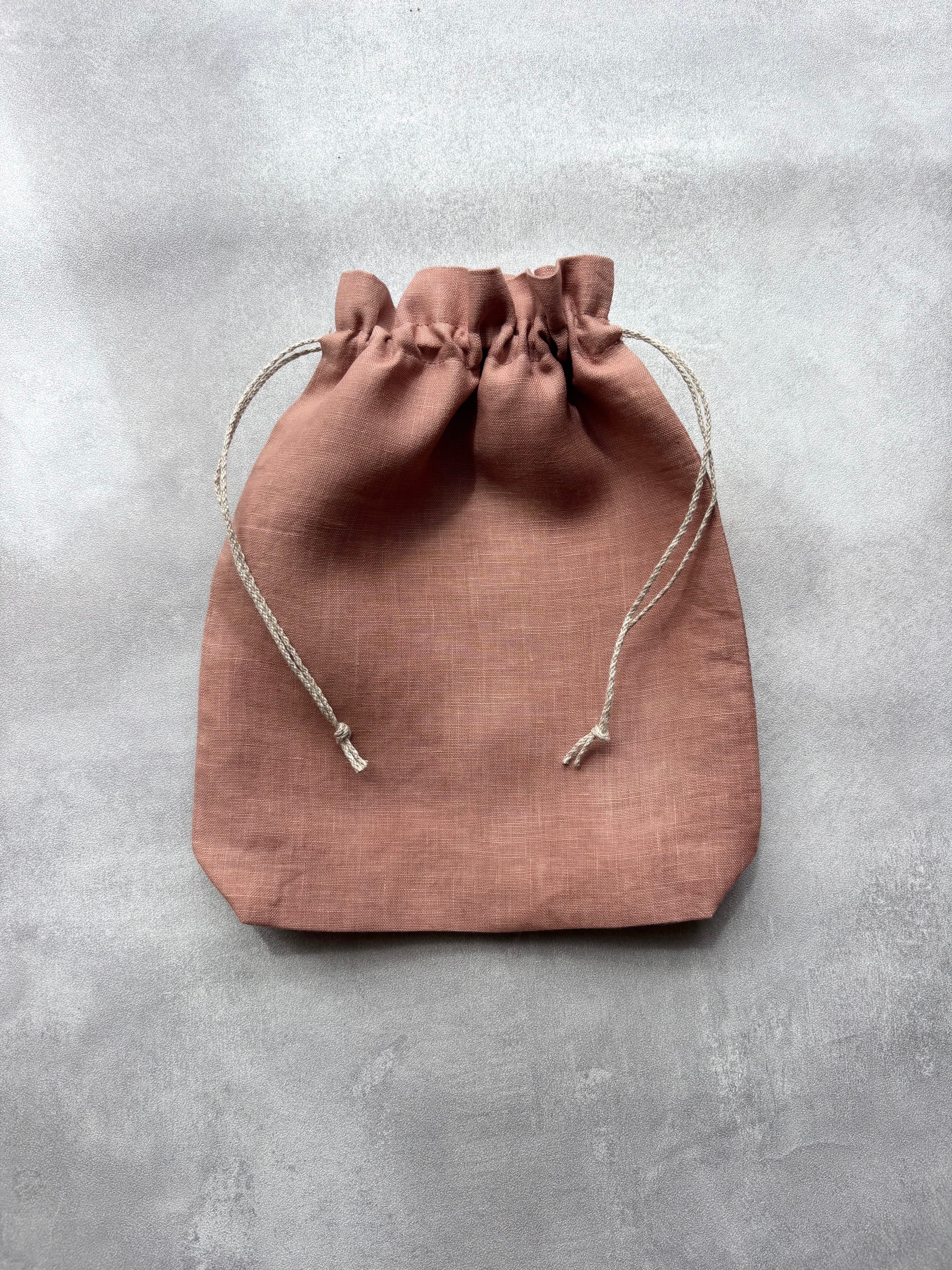 草木染め 巾着ポーチ Medium size リネン100% & リネン100%紐 color : 茜染め