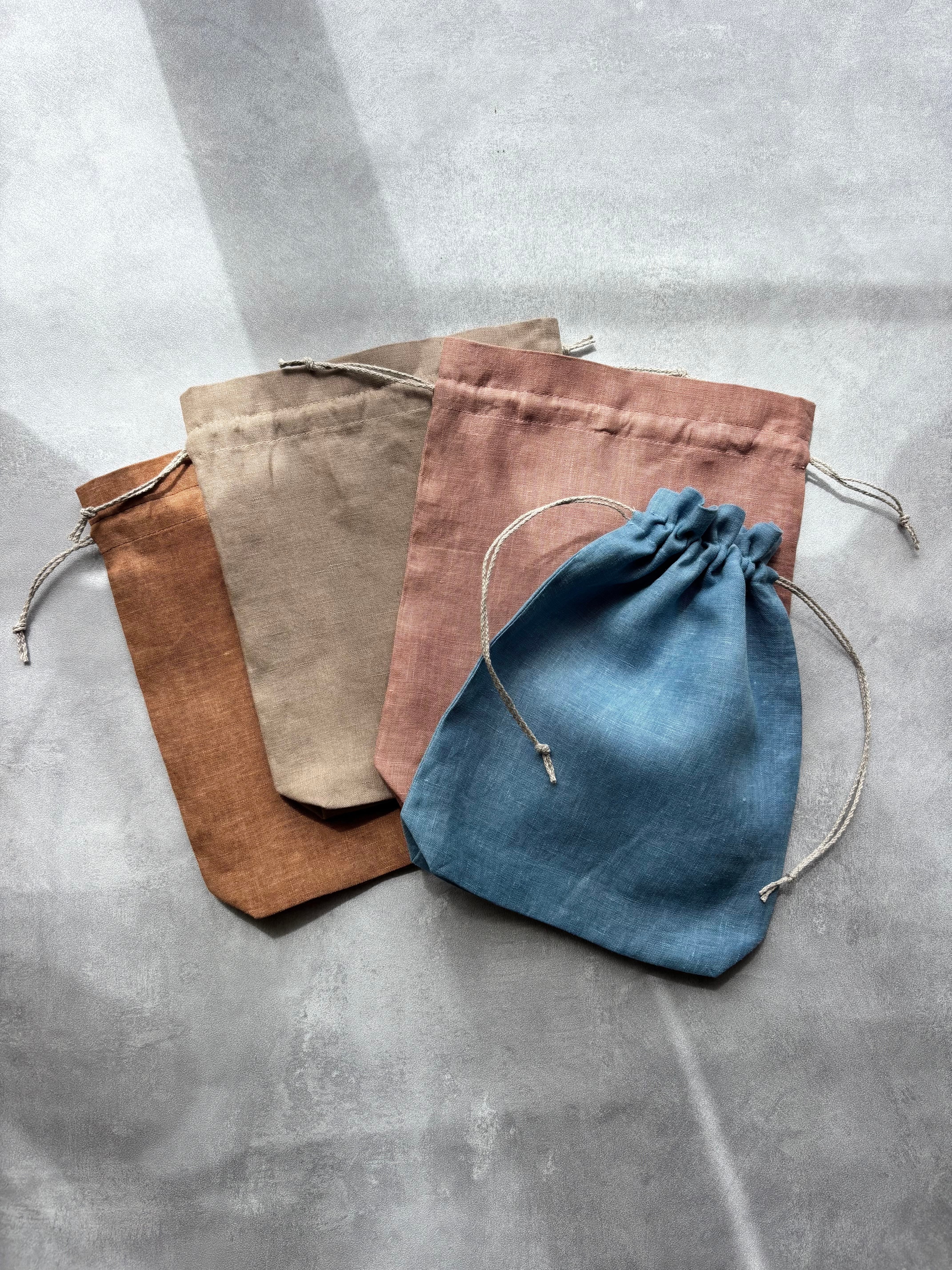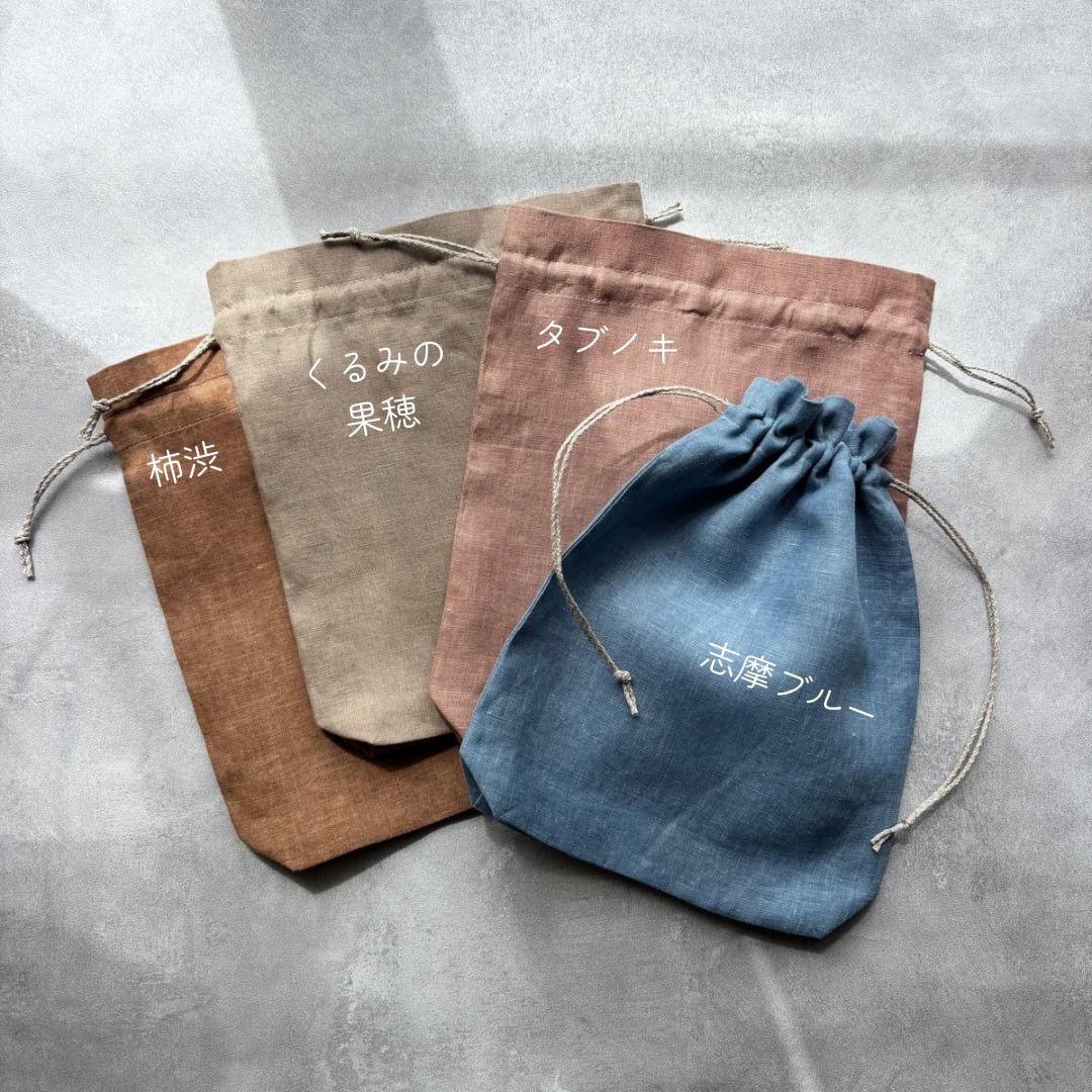 草木染め 巾着 Medium size リネン100%&リネン紐 4color