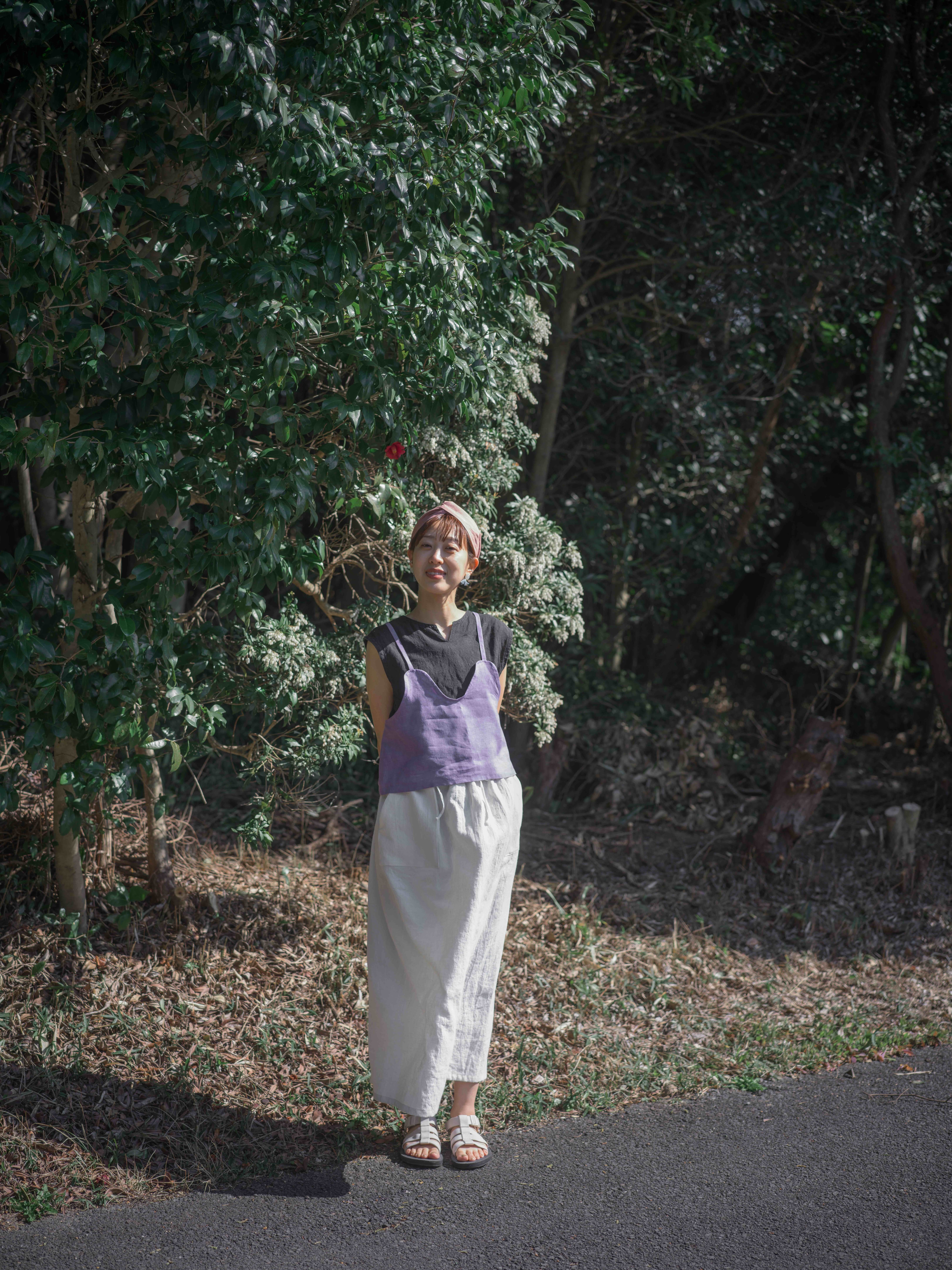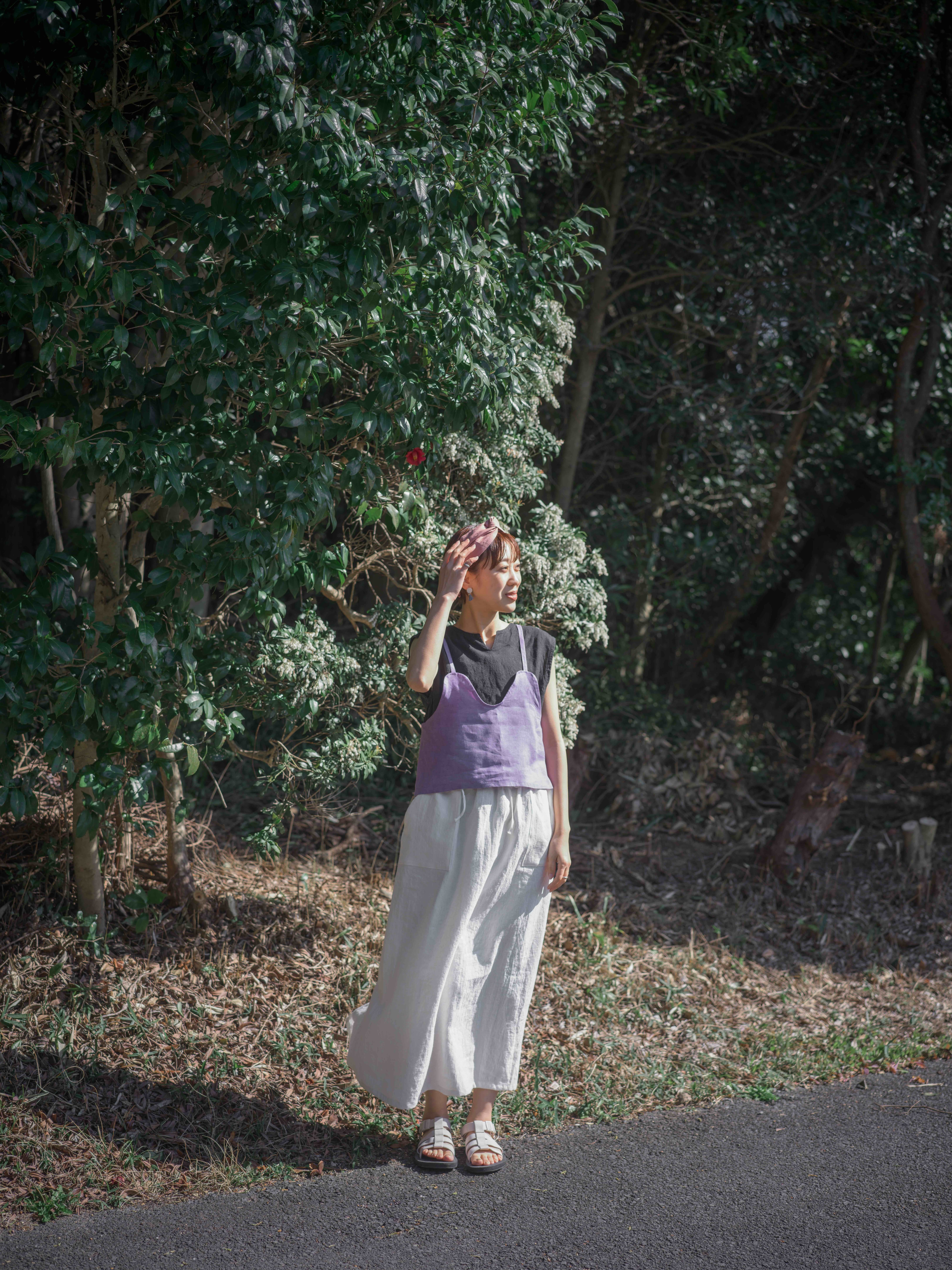 リネンのお洋服、とくに草木染めは多少の色落ちの可能性がございます。そのため単独で、できれば手洗いにて優しくお洗濯をお願いします