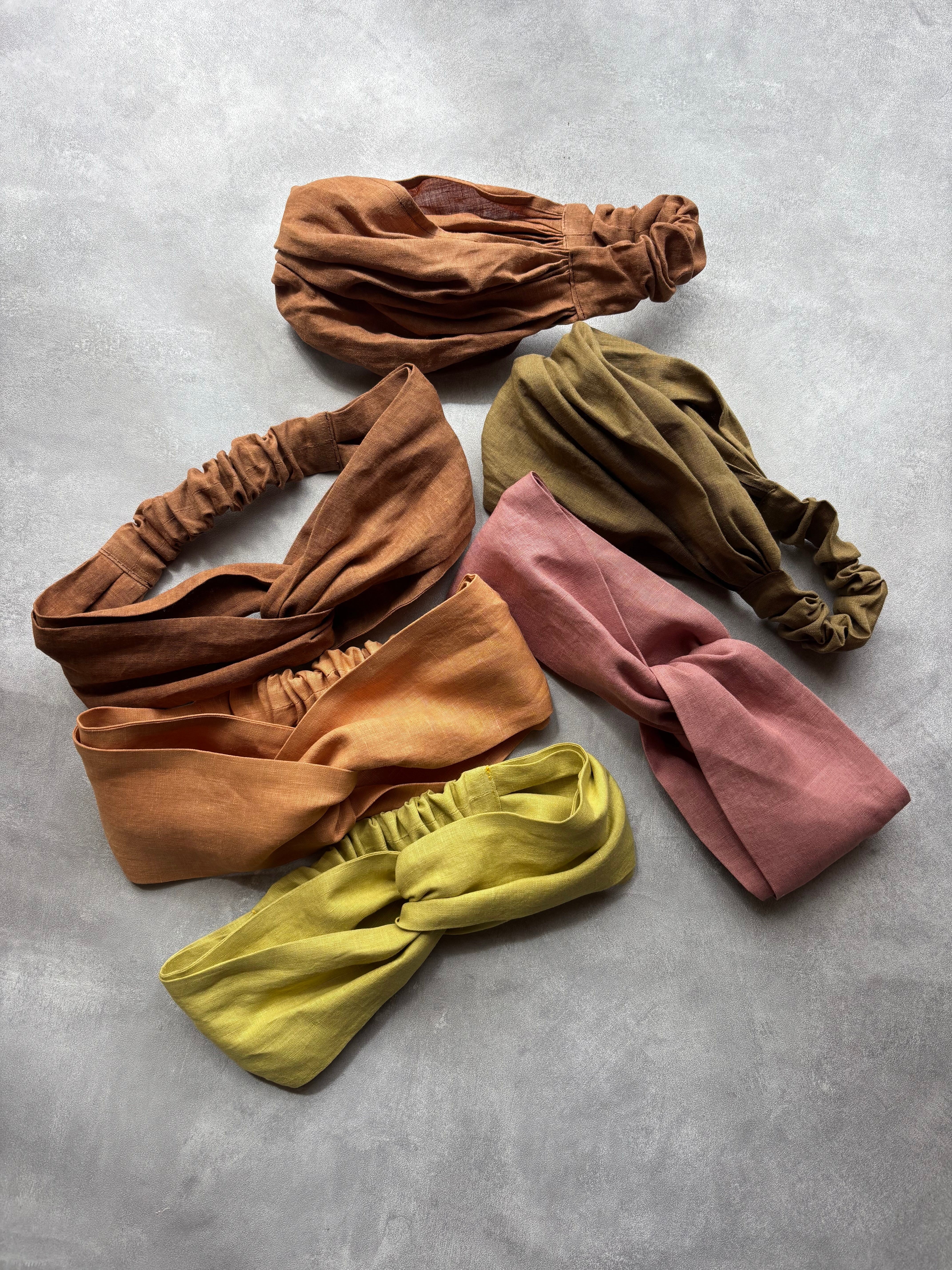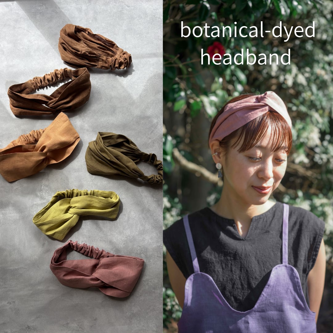 草木染め ヘアバンド ヘアターバン リネン100% 幅広タイプ&クロスターバンタイプ 5color