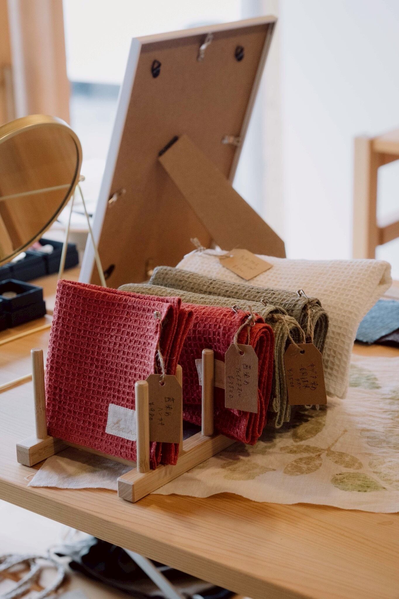 #リネン#リネンタオル #タオル#リネンワッフル #草木染 #天然染色 #茜