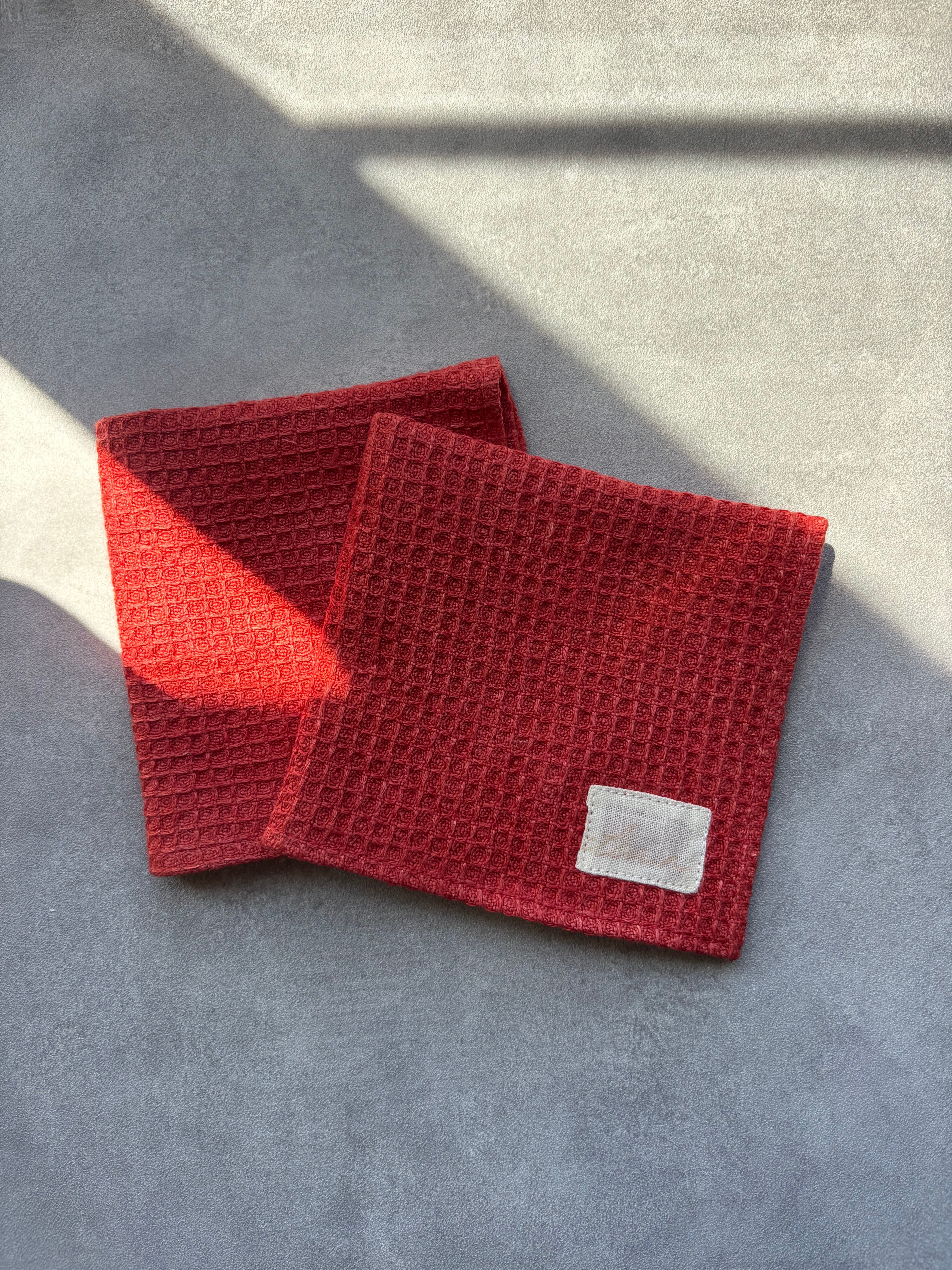 茜染 ミニハンカチ ミニキッチンクロス リネンワッフル生地 リネン100%