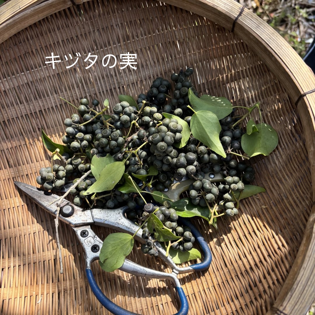 3月中旬〜下旬の短い期間だけ染めることができるキズタの実染め