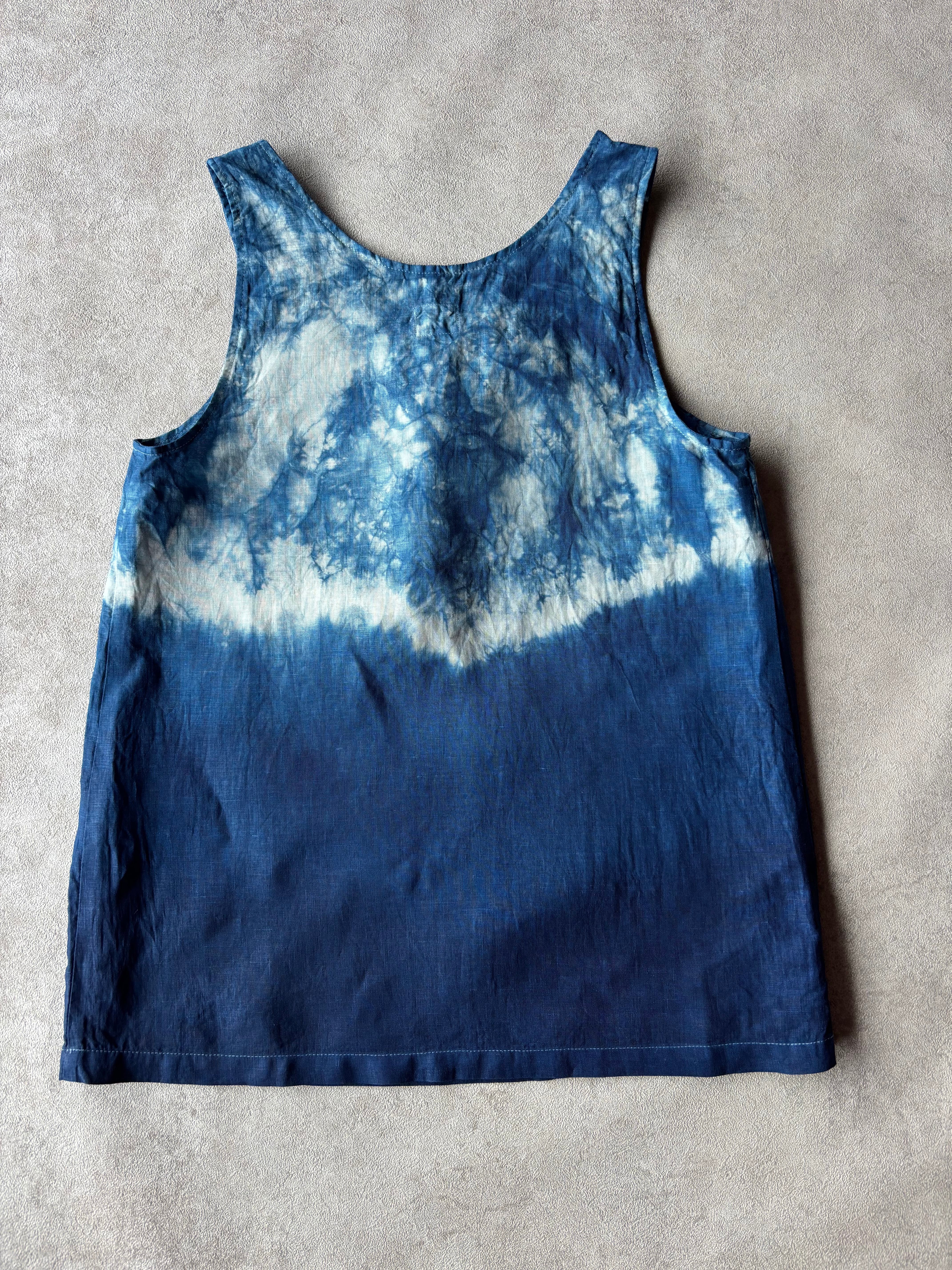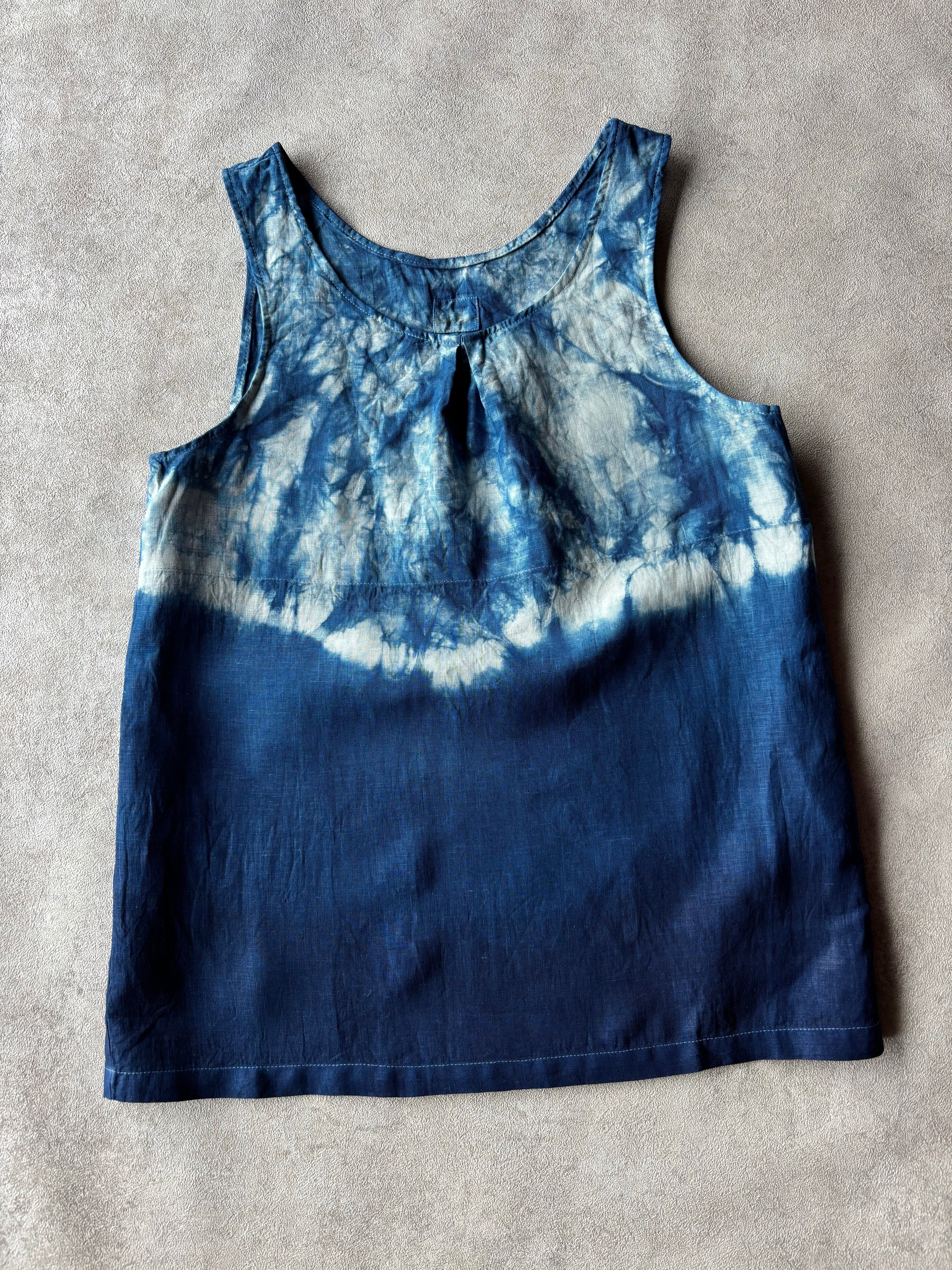 リネン100%のタンクトップを絞り染め技法を使って染めました