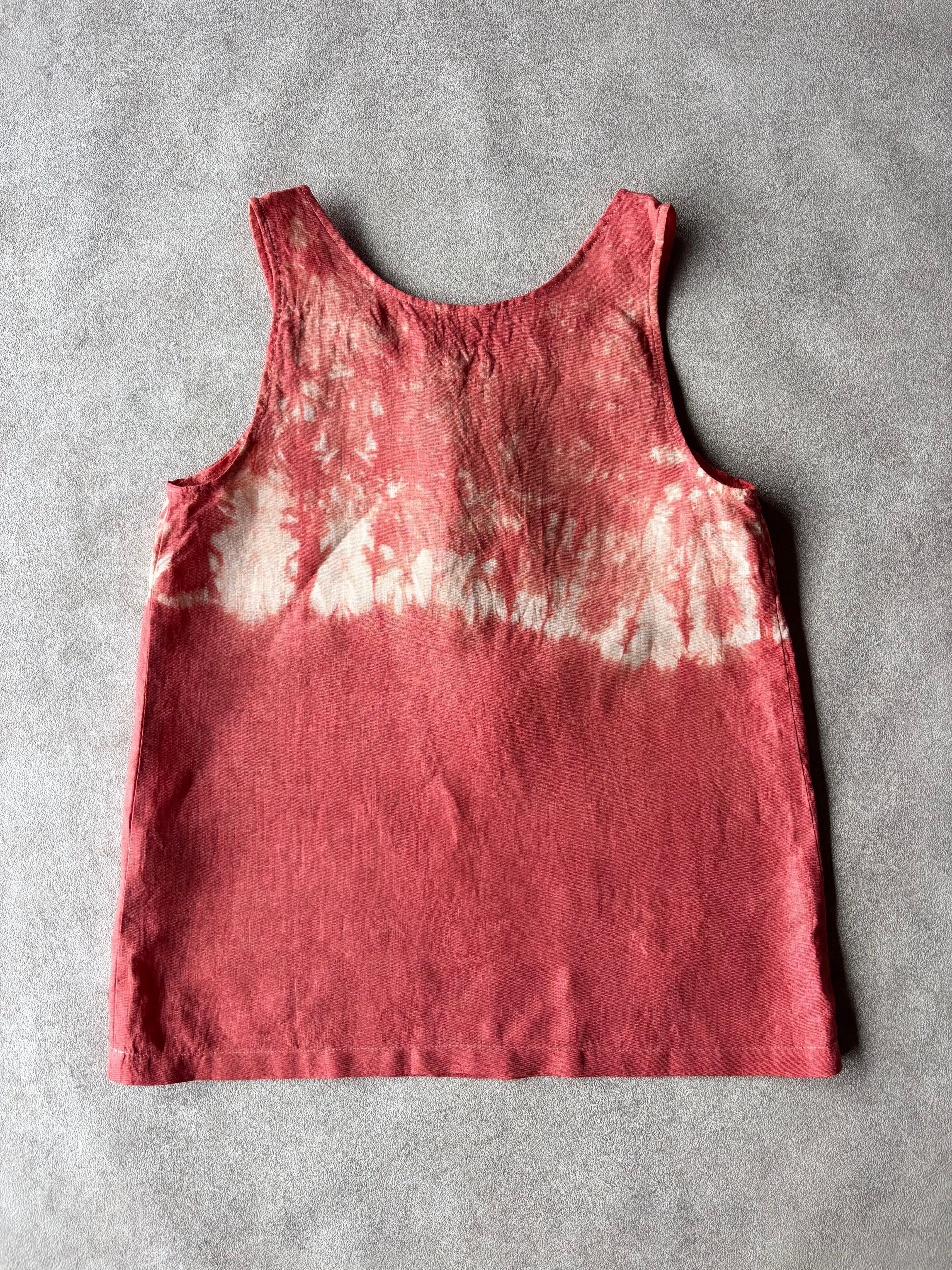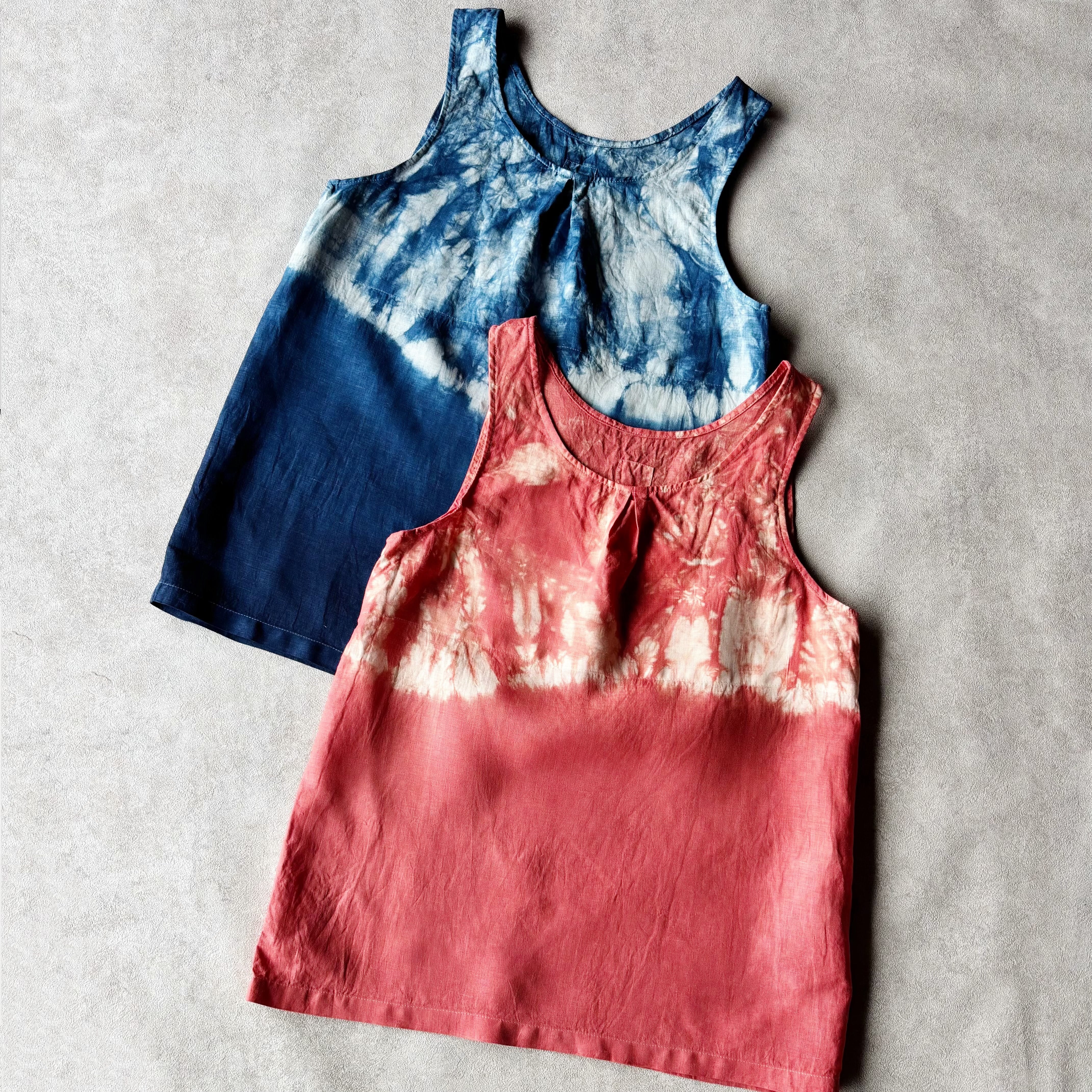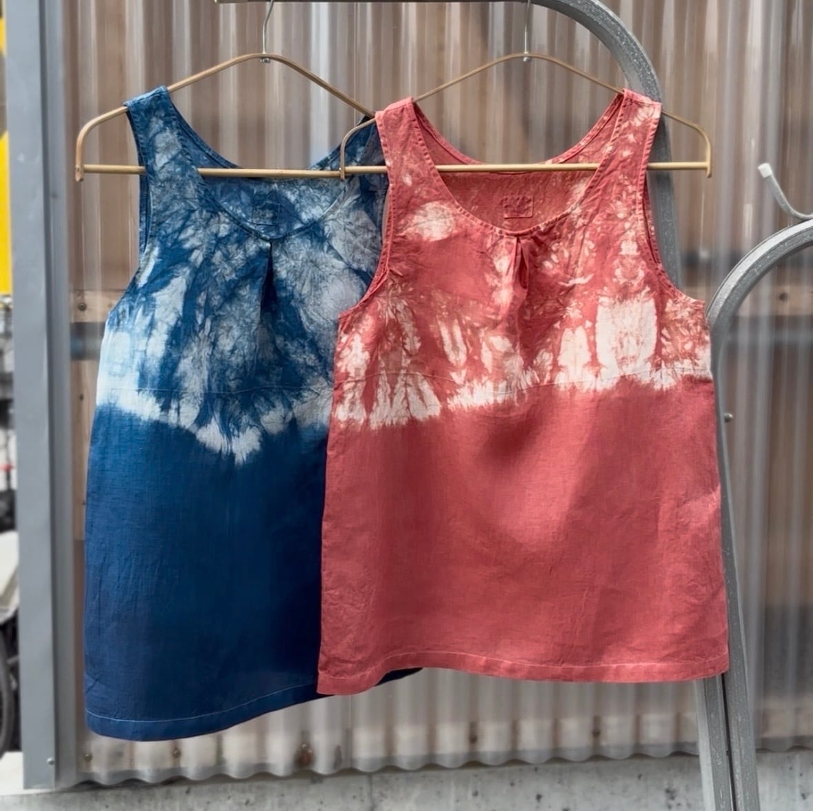 藍染&茜染め リネンタンクトップ リネン100% 絞り染め タイダイ柄