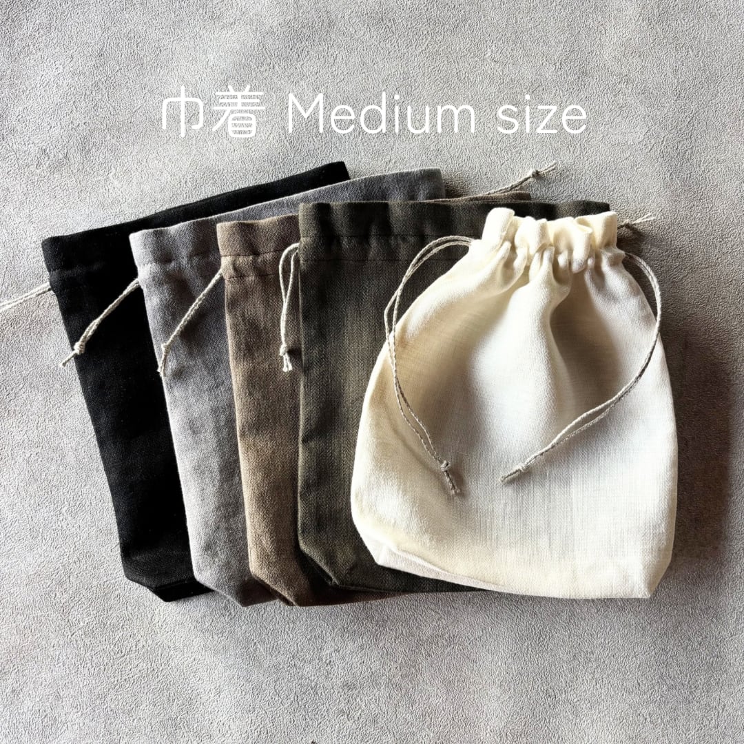 巾着ポーチ ベルギーリネン100%&リネン紐 medium size 5color