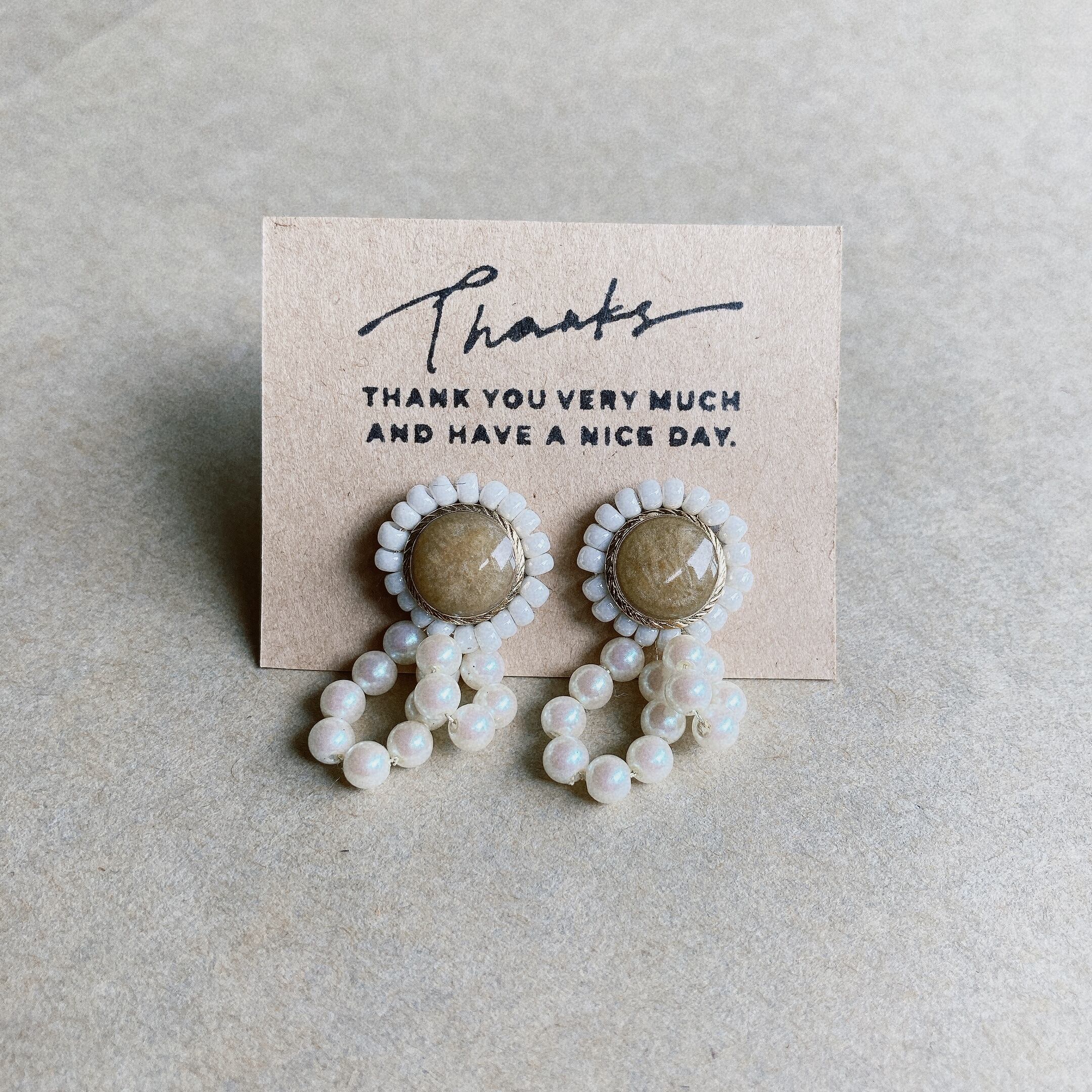 手刺繍ピアス ヴィンテージボタン&ビーズ ビーズ刺繍 パール color : white & light green
