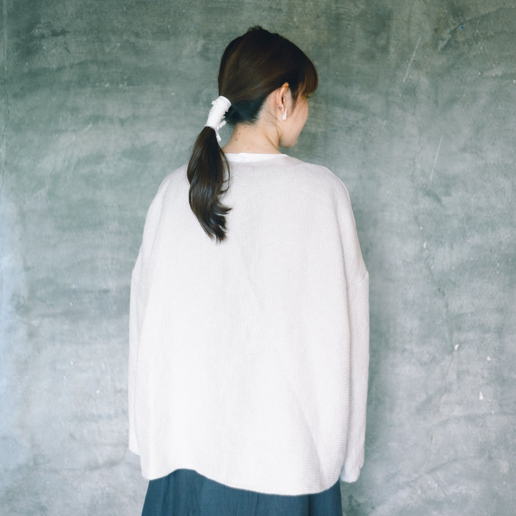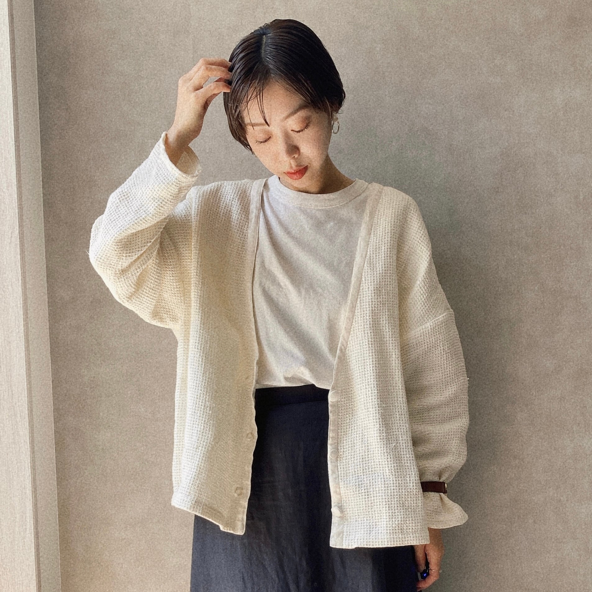 リネンワッフル カーディガン リネン100% color : ホワイト / ベージュ