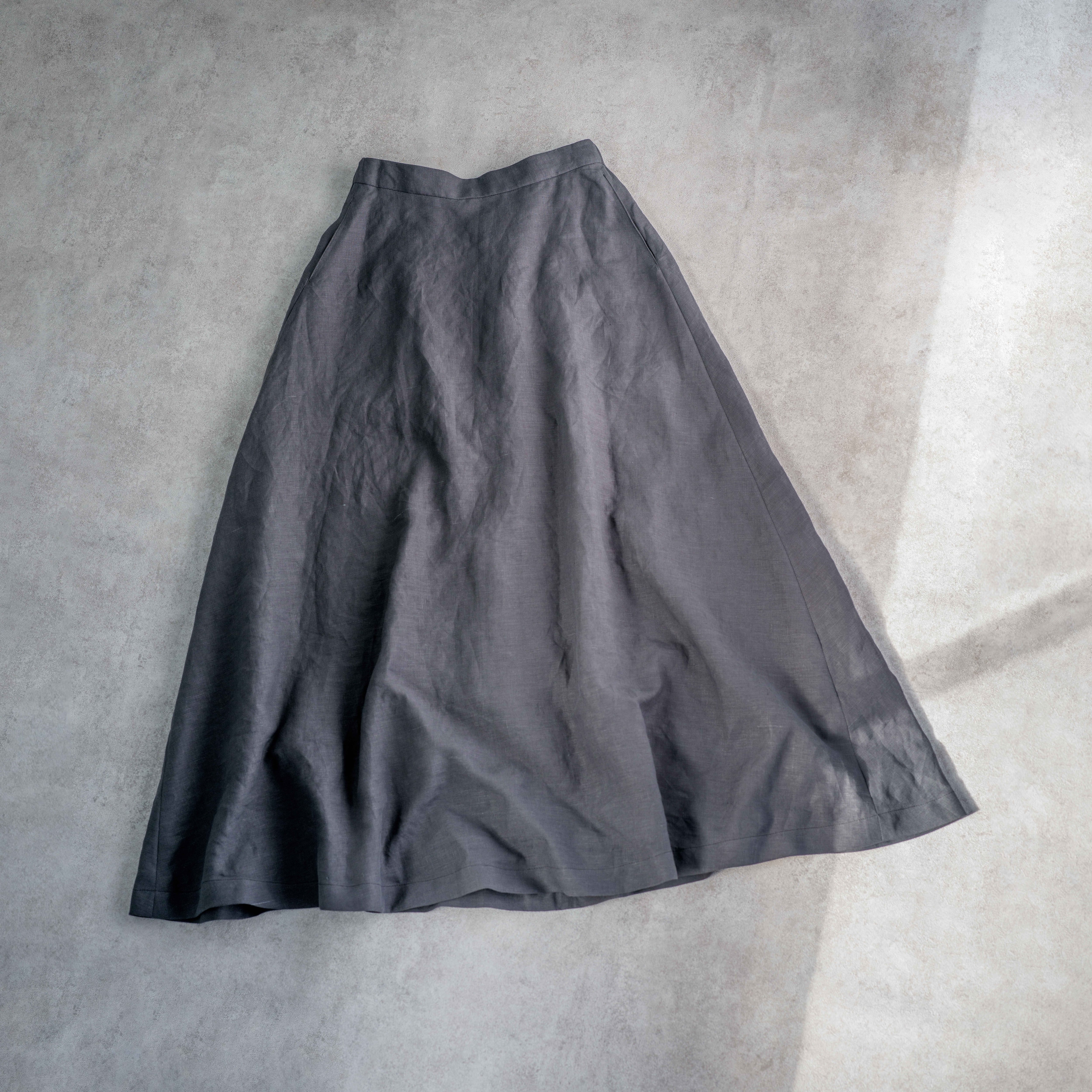 リネンのロングフレアスカート(裏地付き)ウエスト後ゴム 表地:リネン100% 裏地:キュプラ100% color : チャコールグレイ