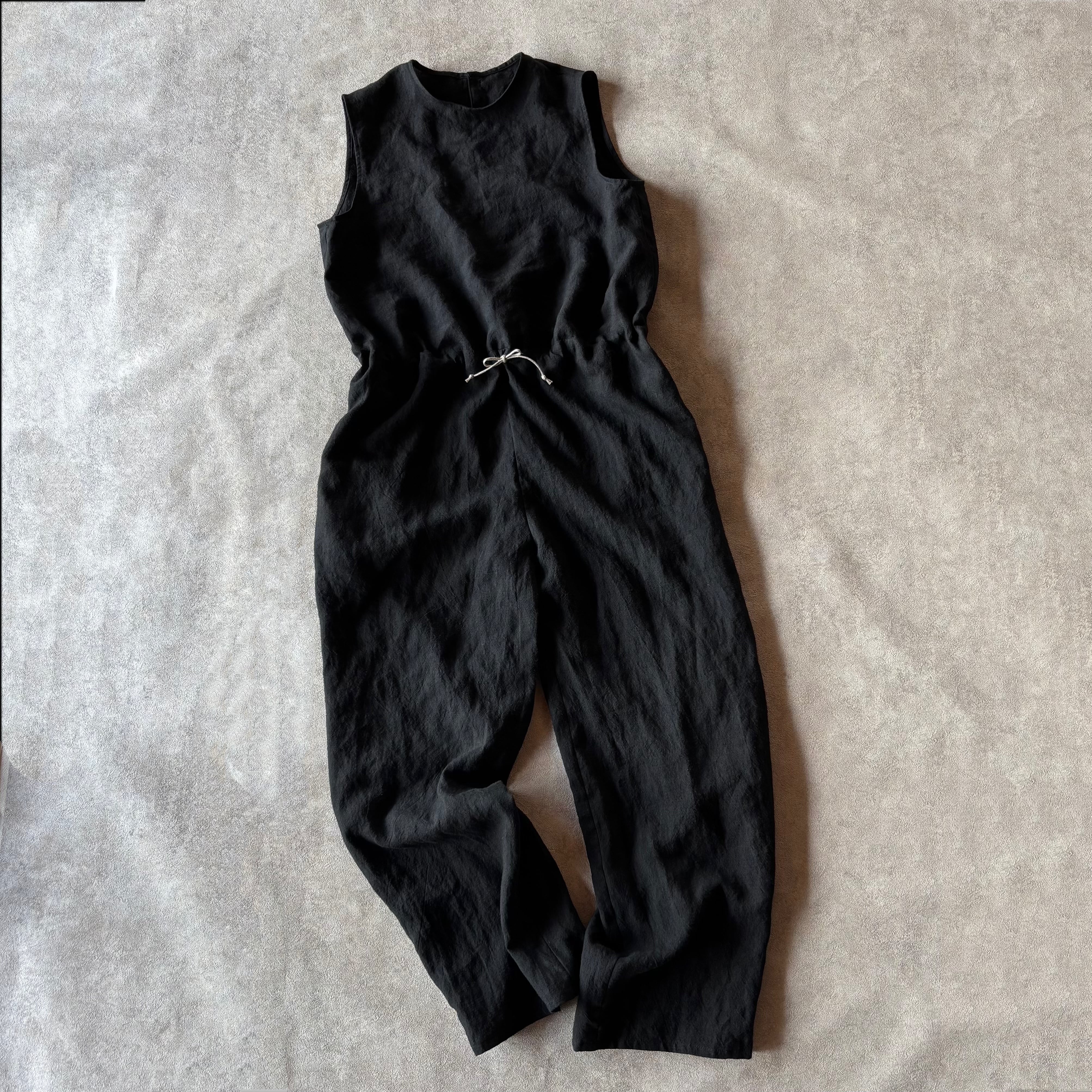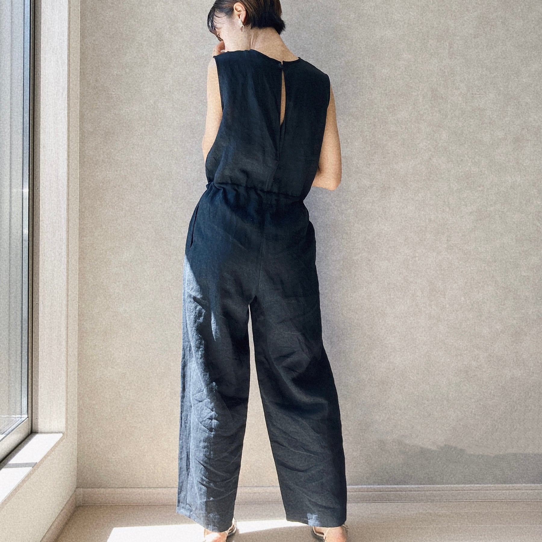 ラミーリネン テーパードパンツオールインワン サロペット color : ブラック 〈送料無料〉
