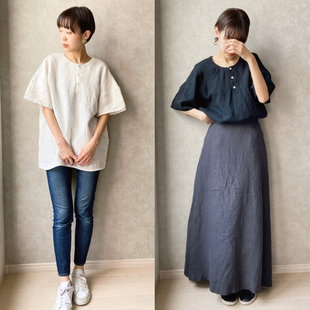 #リネン#リネン服#リネントップス#オーバーショルダー#Tシャツ#リネンTシャツ
