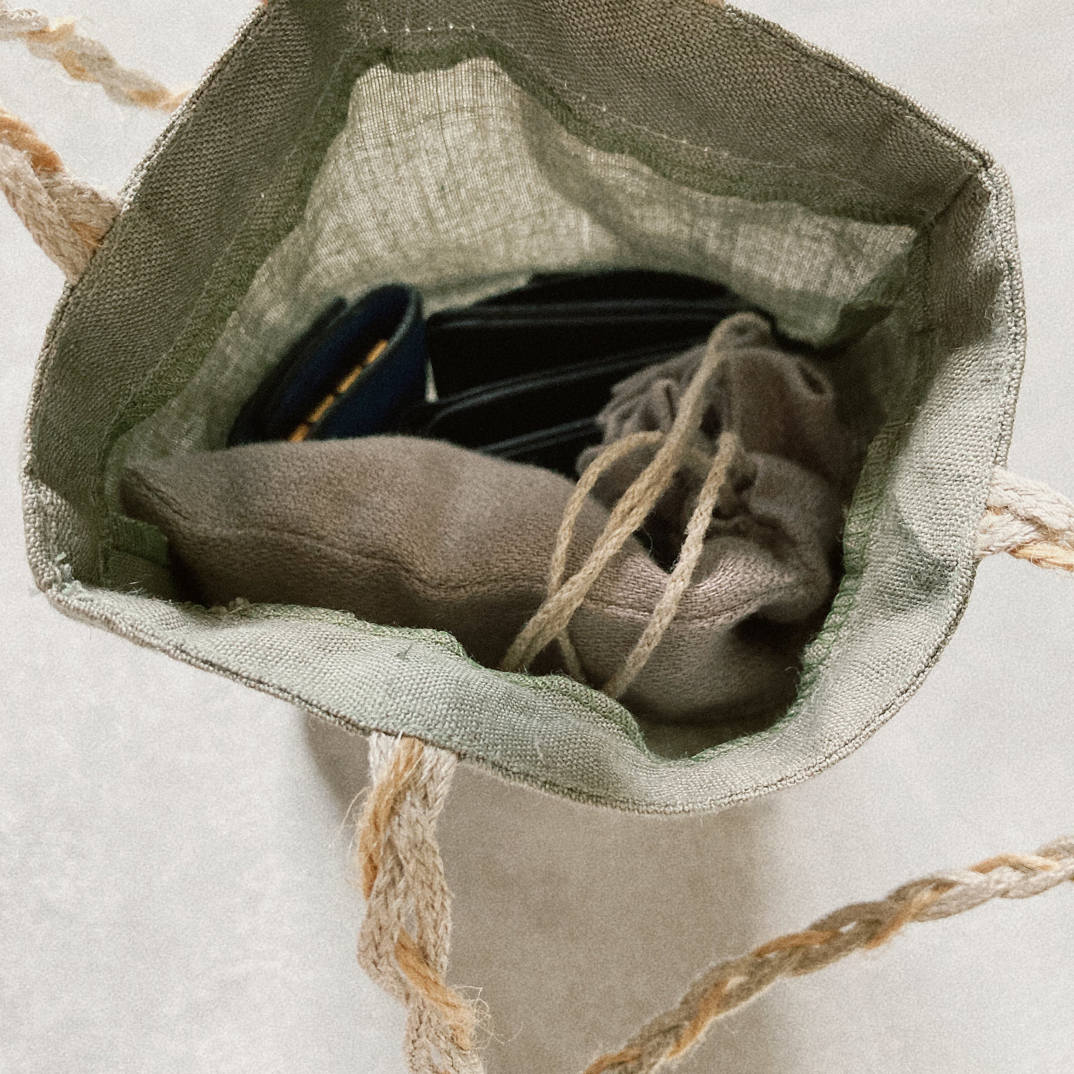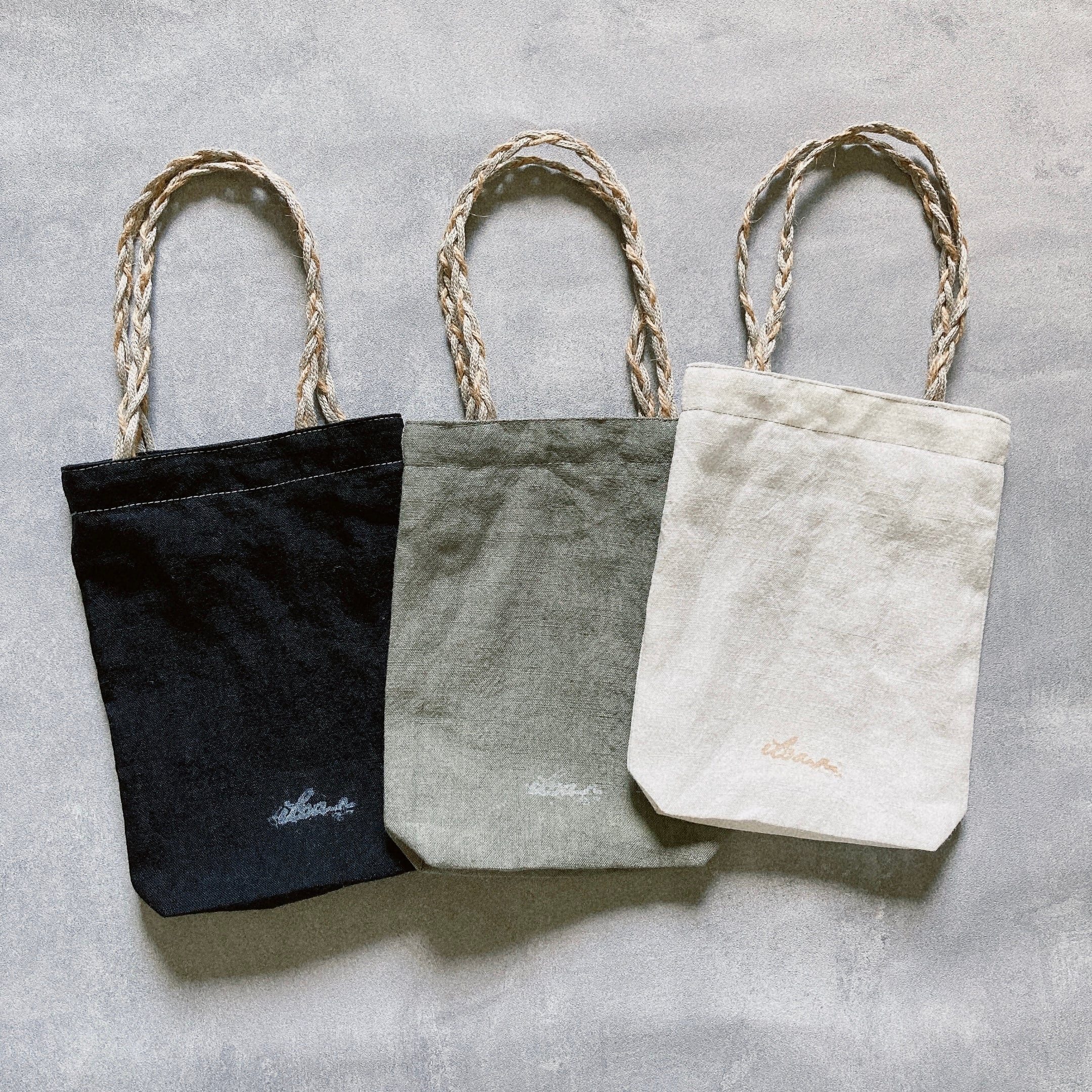 ラミーリネン×リネン&麻紐 miniトートバッグ マチあり color : ホワイト・オリーブ・ブラック