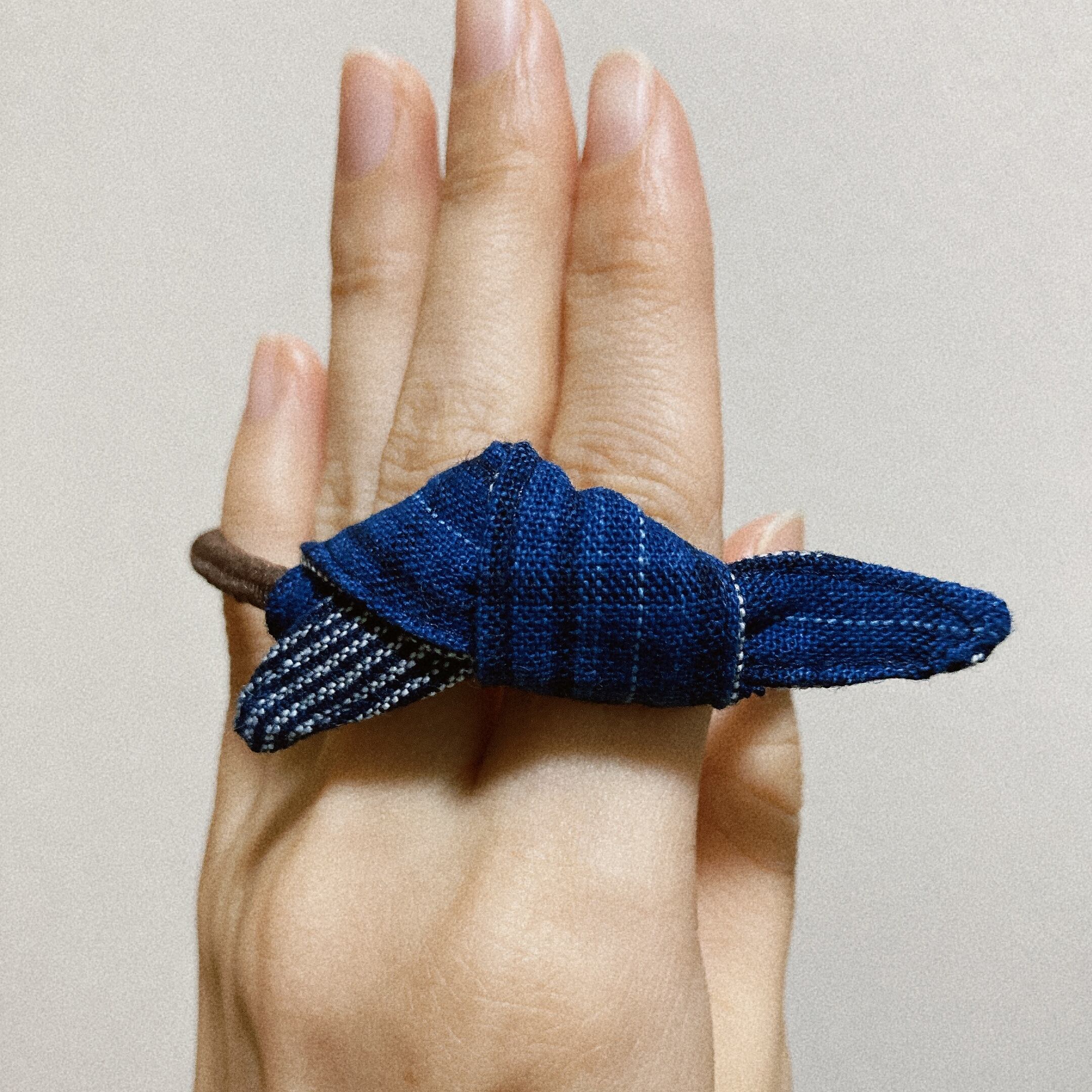 ヘアゴム リボン みいと織 [松阪もめん] 綿100% 天然藍染 【サンプル価格】