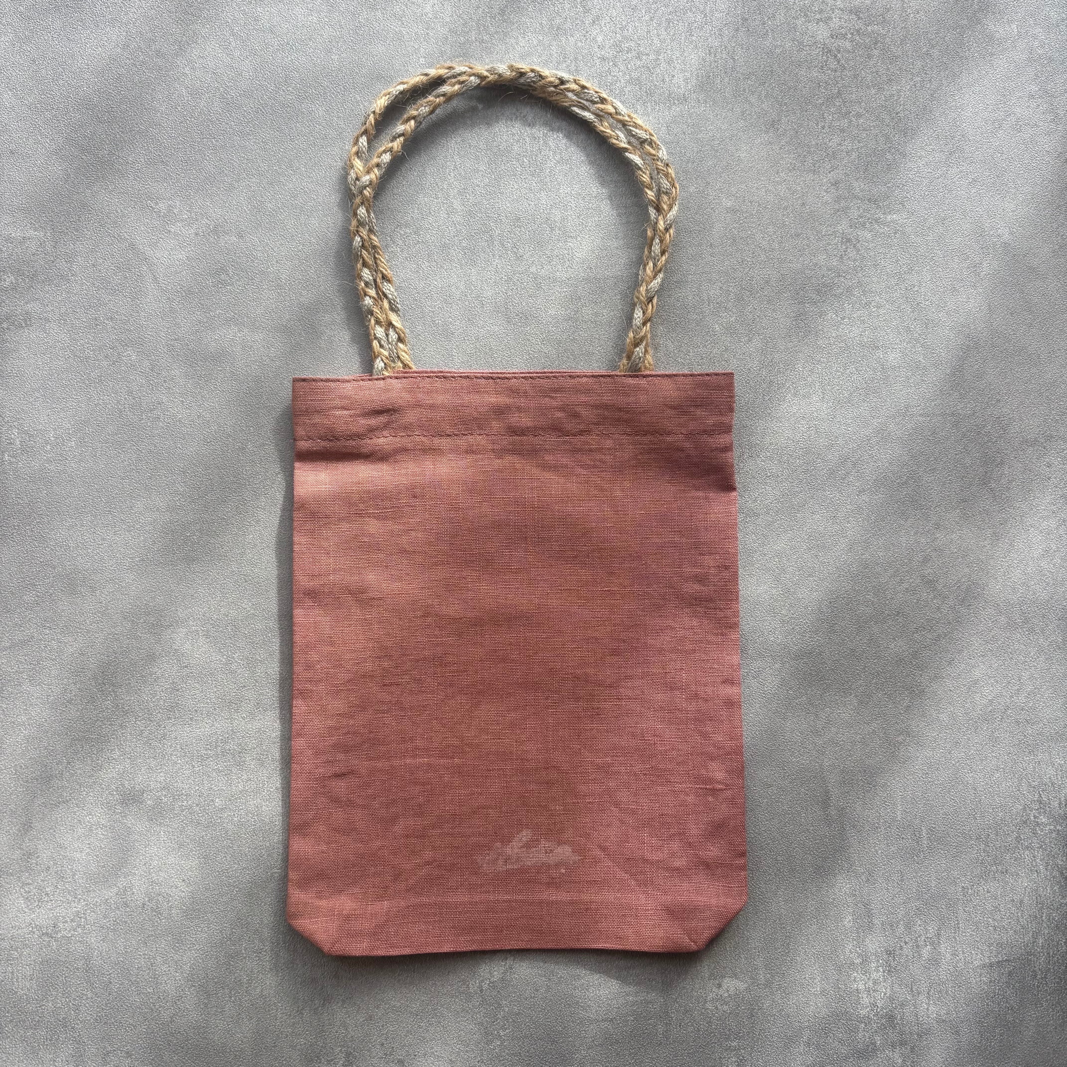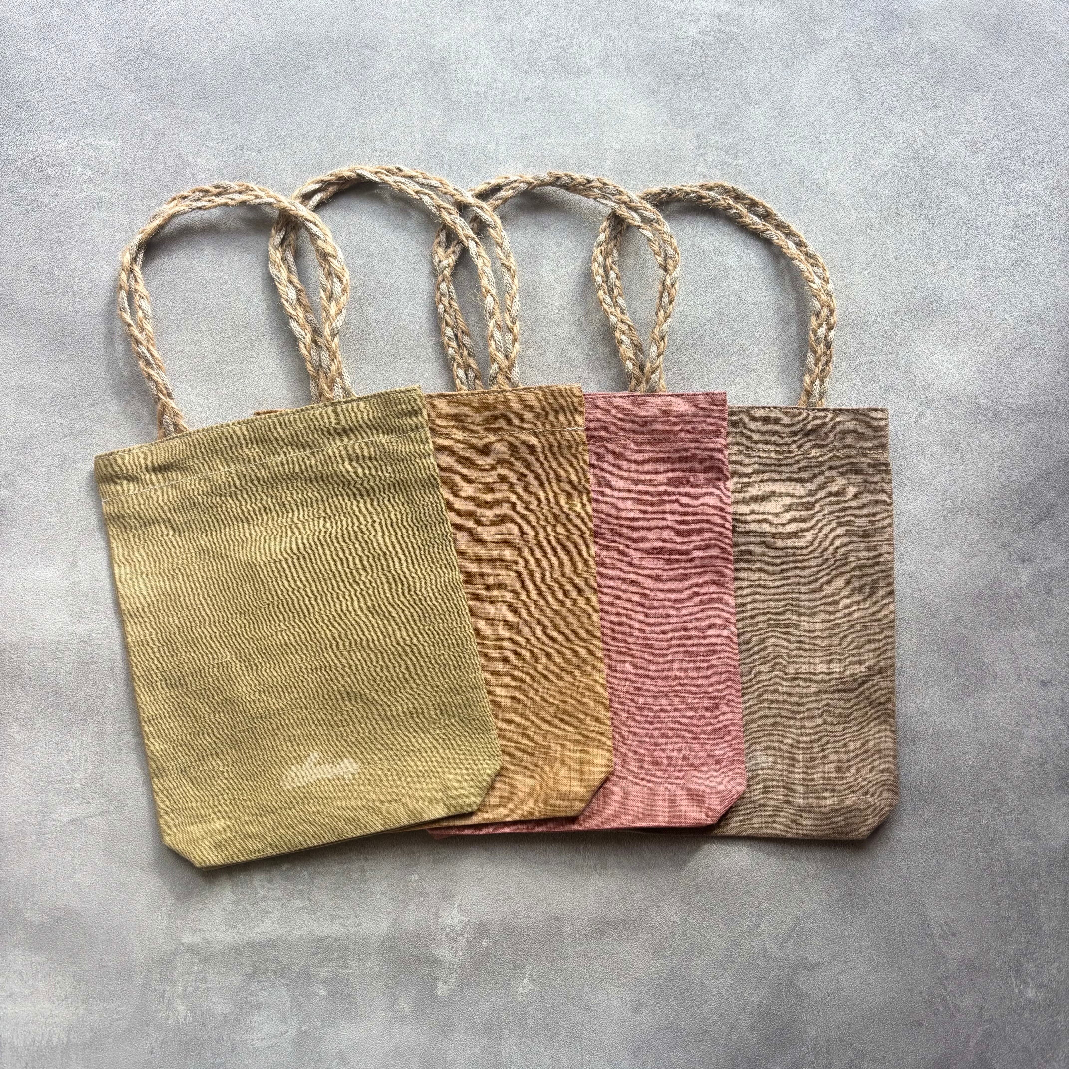 草木染め リネン&麻紐 ミニトートバッグ ミニトート color : ヨモギ・コウボウムギ・栗・くるみ