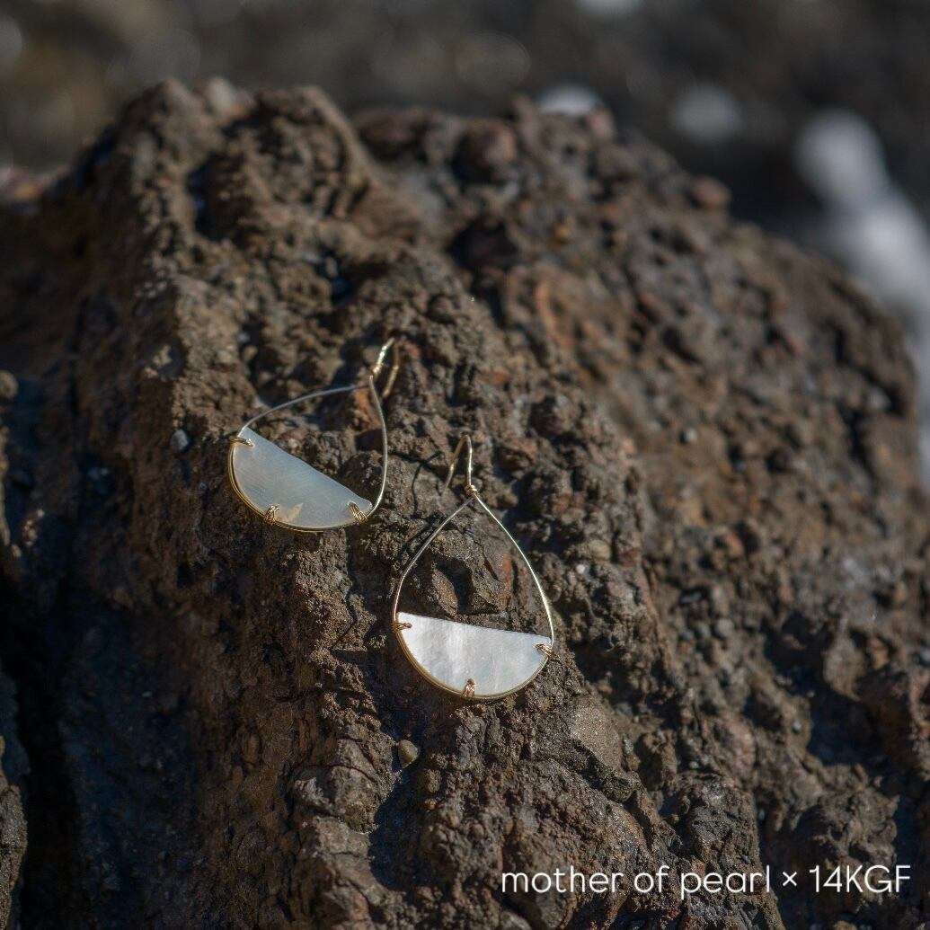 half moon shape _horizontal_ マザーオブパール(白蝶貝) × 14KGF(ゴールドフィルド) ピアス