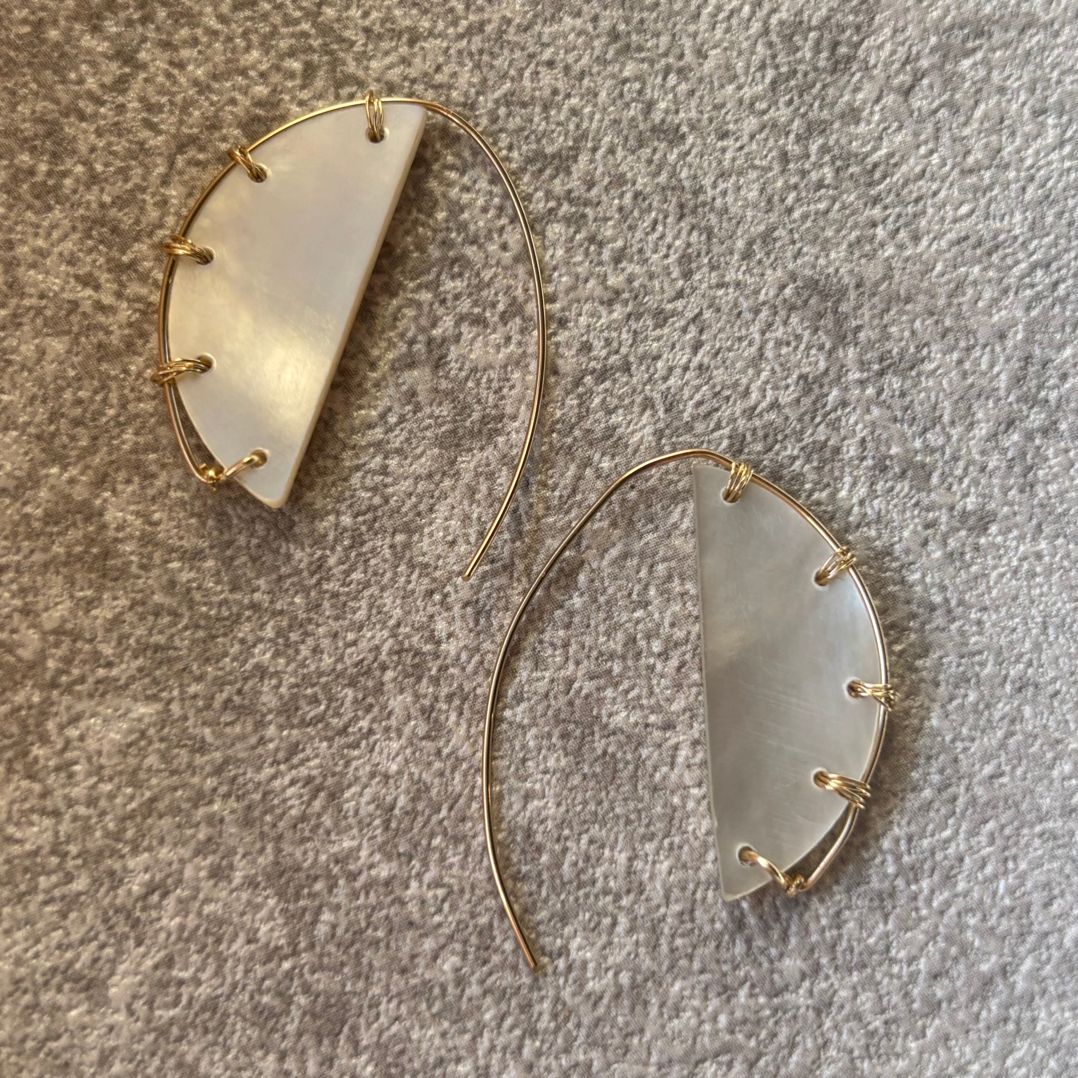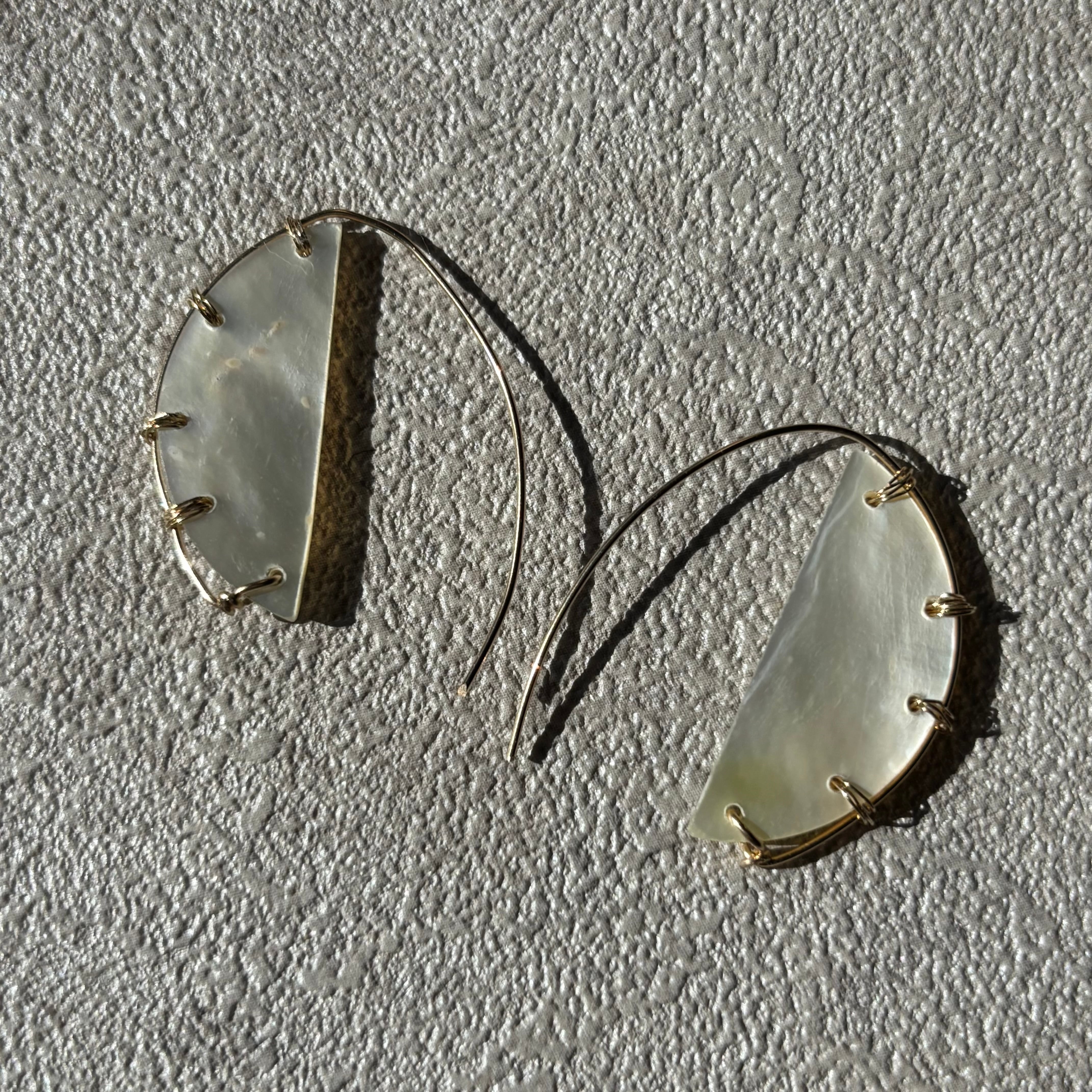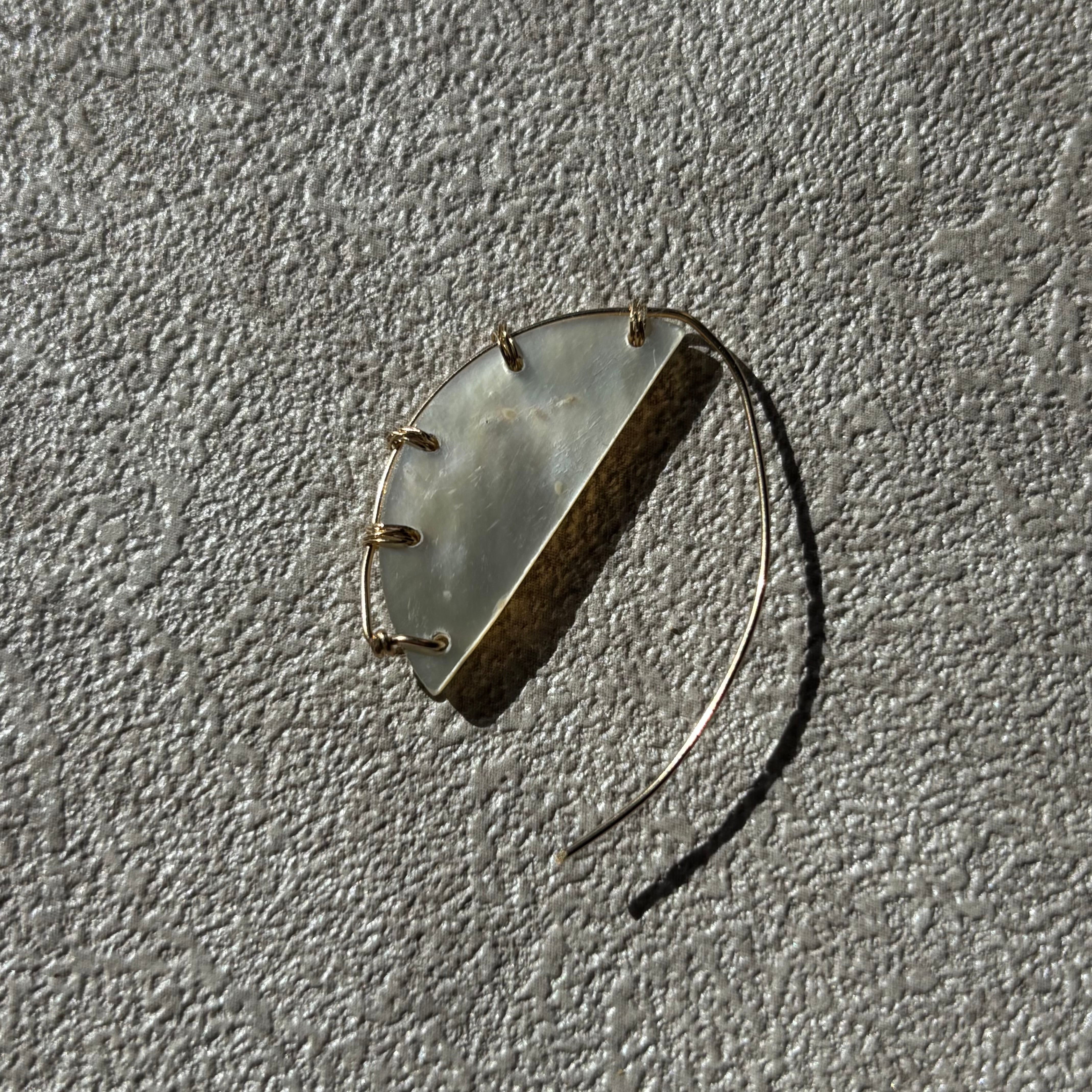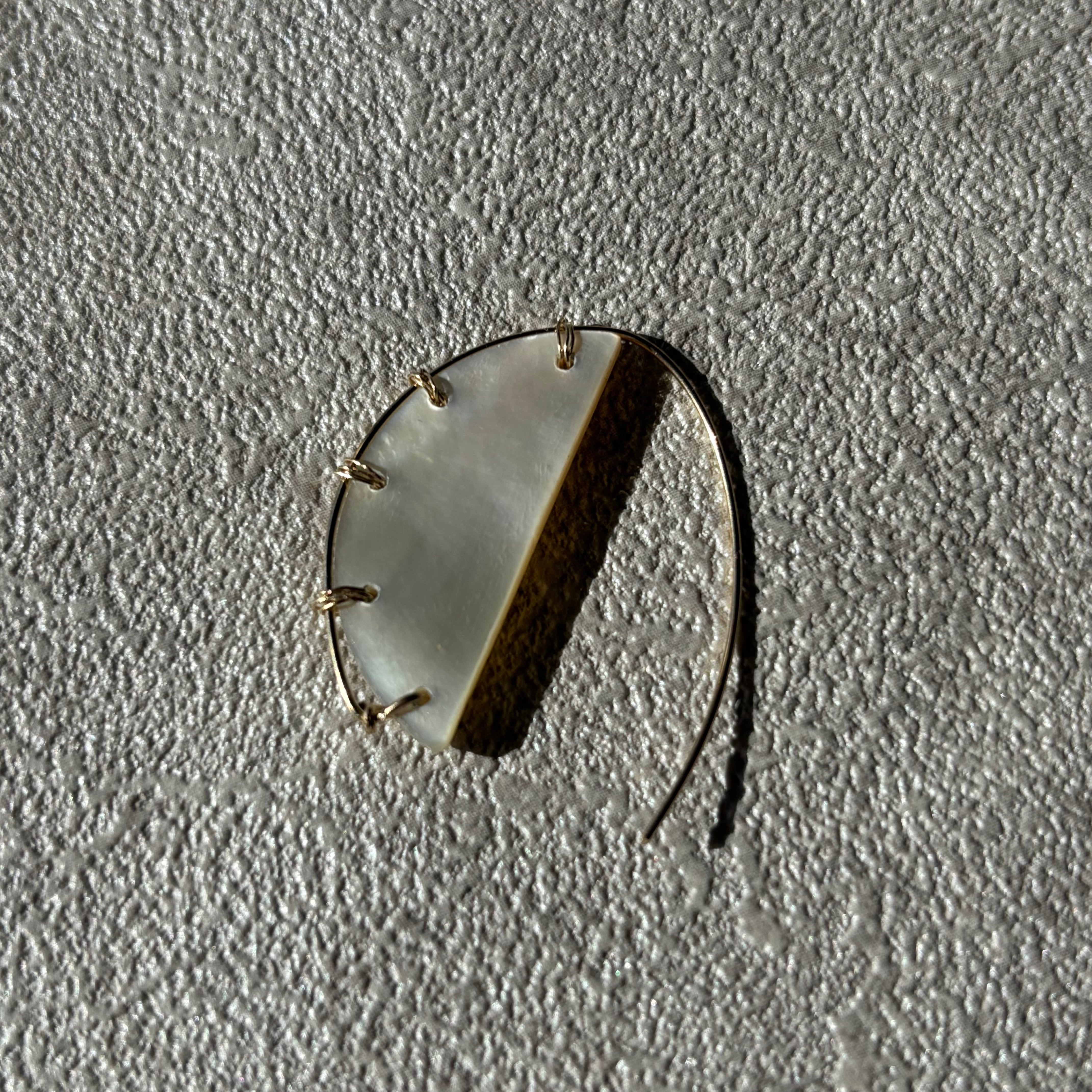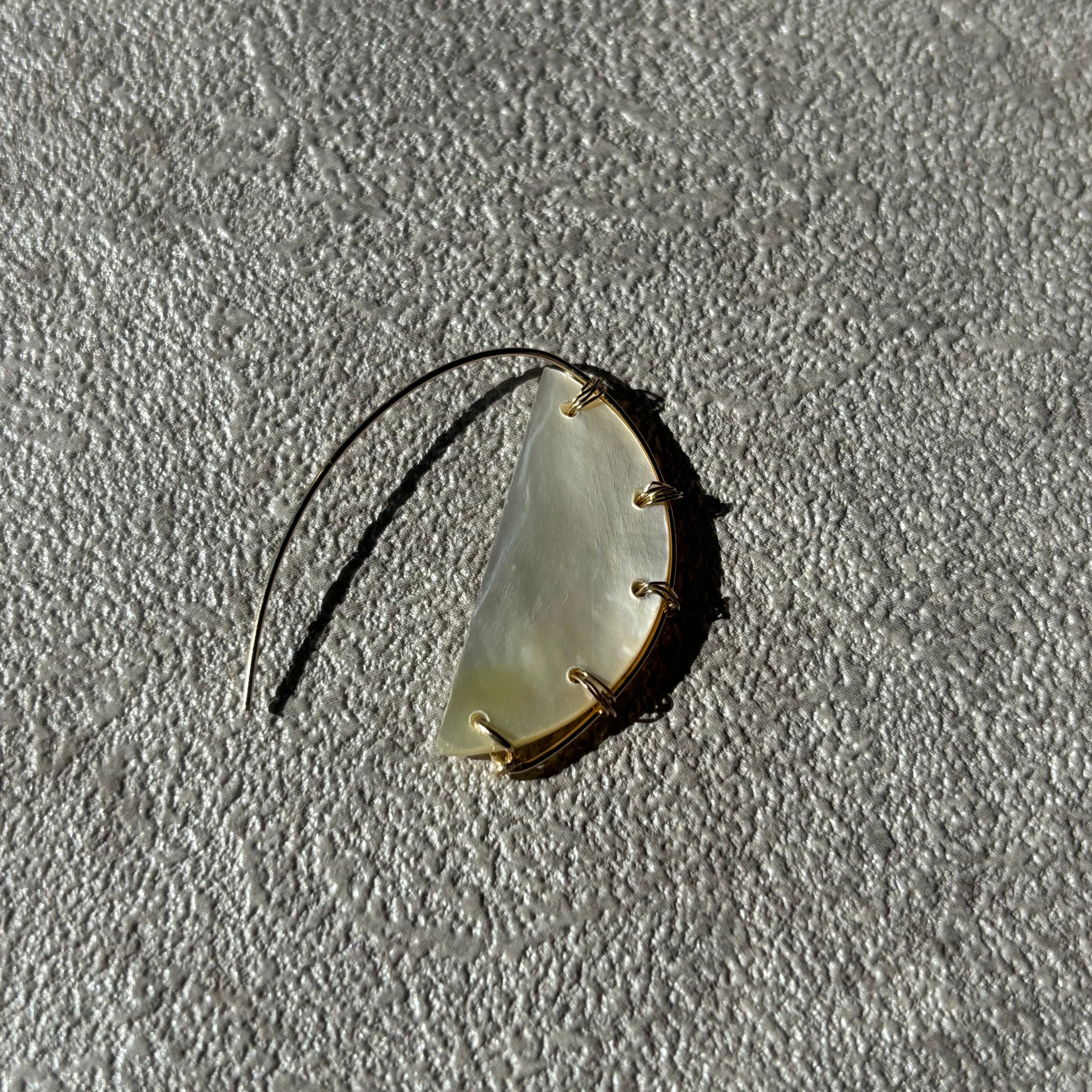 half moon shape _vertical_ マザーオブパール(白蝶貝) × 14KGF(ゴールドフィルド) ピアス