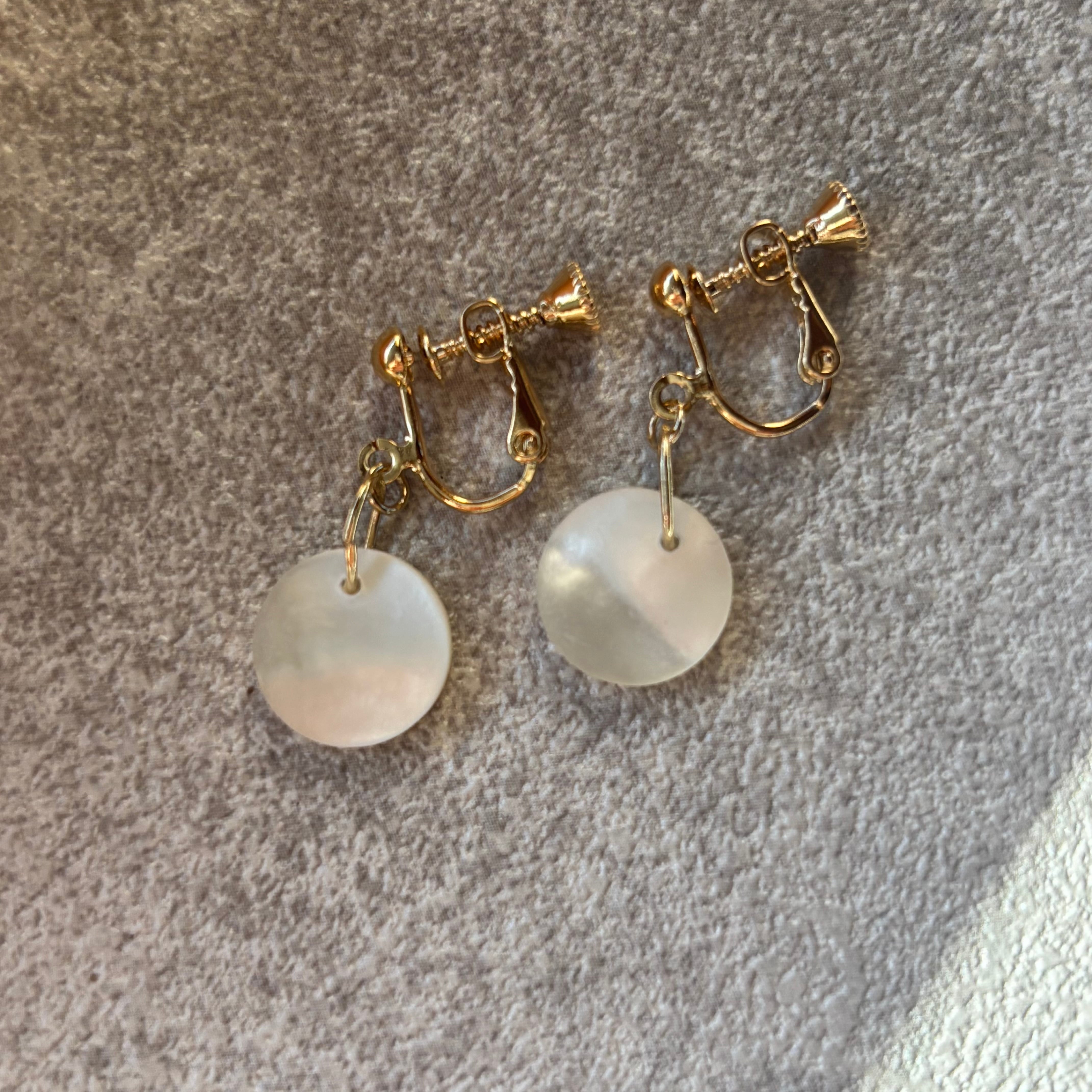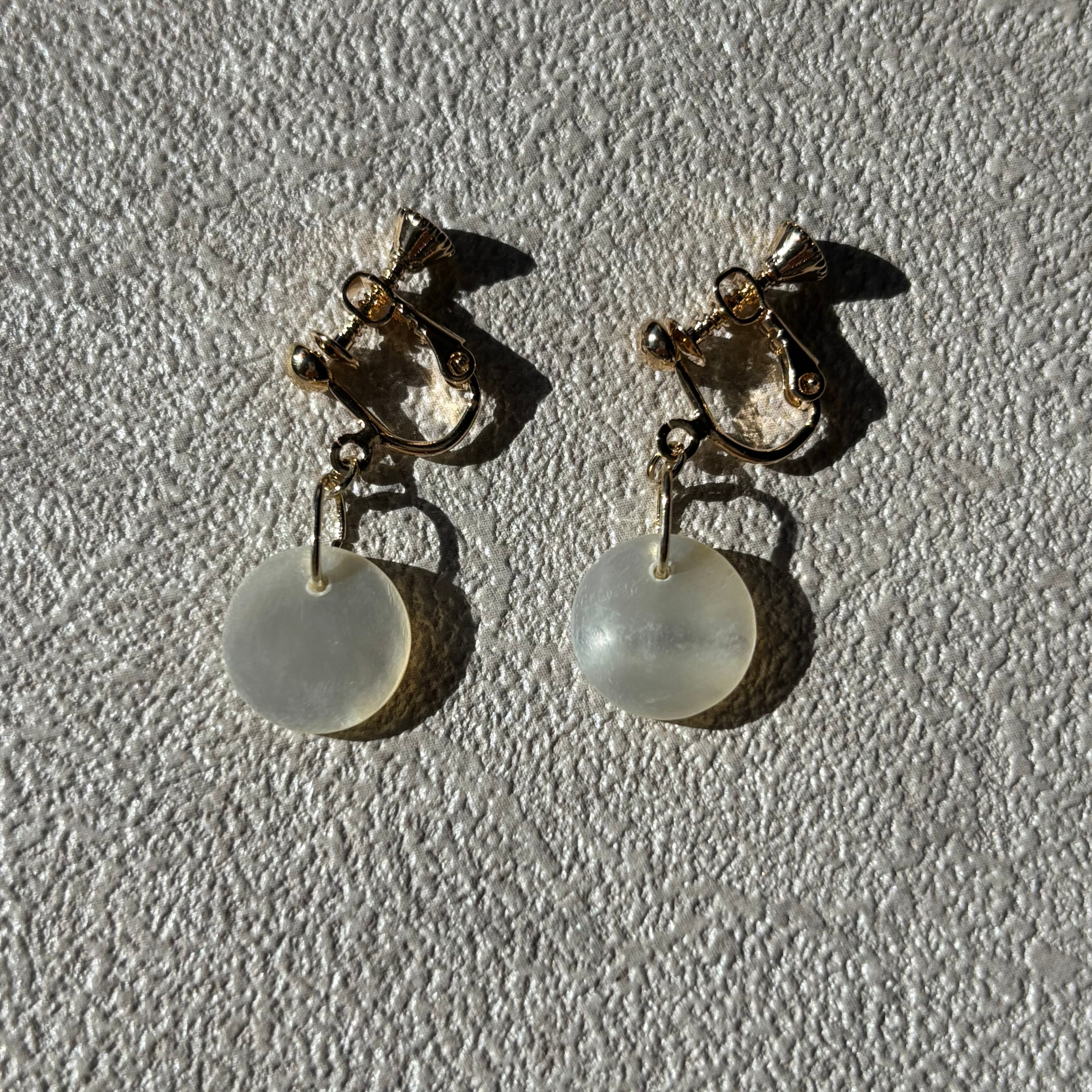 Tiny moon マザーオブパール(白蝶貝) × 16KGP(16金コーティング金具) イヤリング
